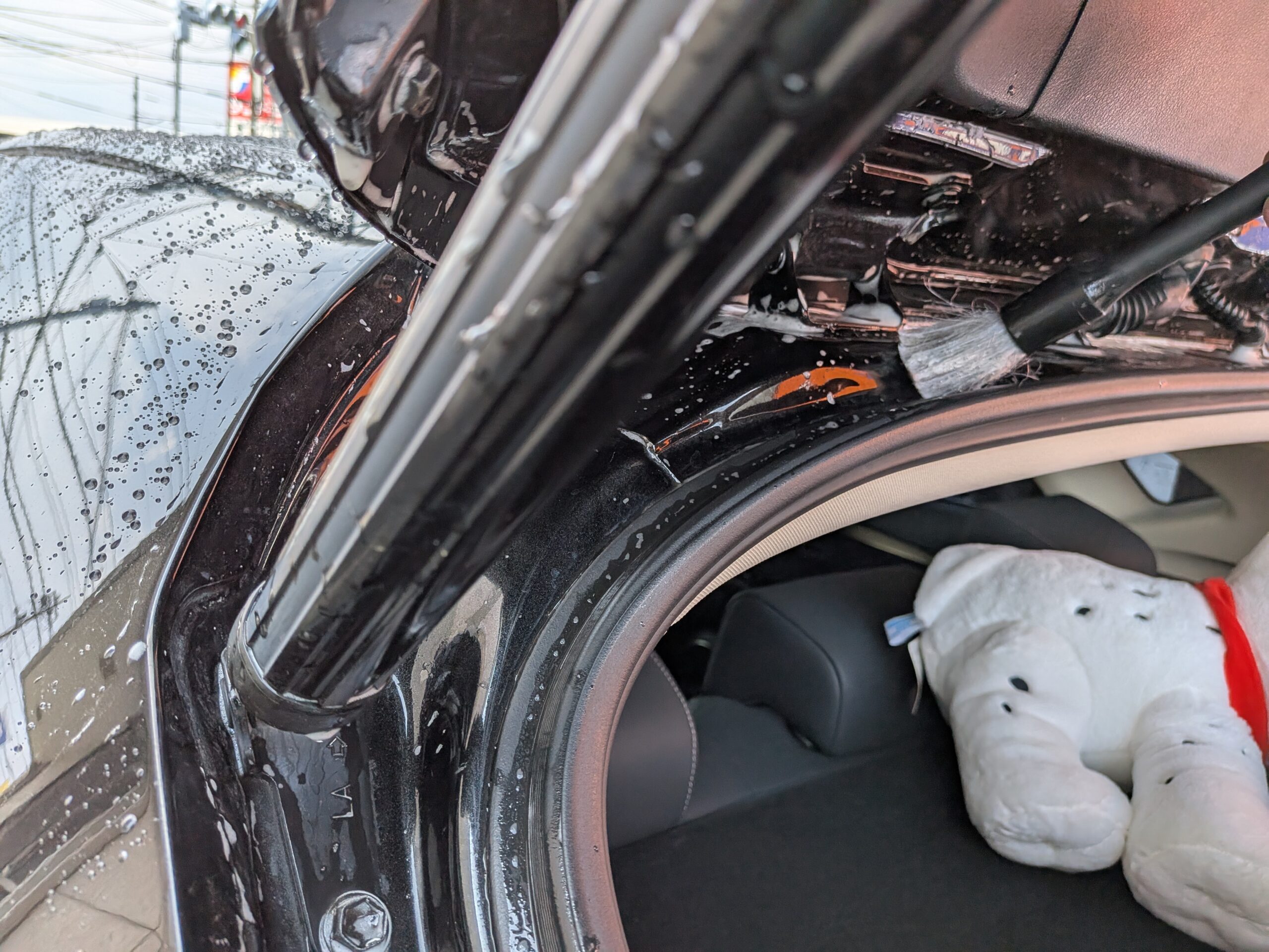 ガレージ入りましてボディのクリーニングいたしました。ポリッシャー作業ができない細かな部分の清掃などです