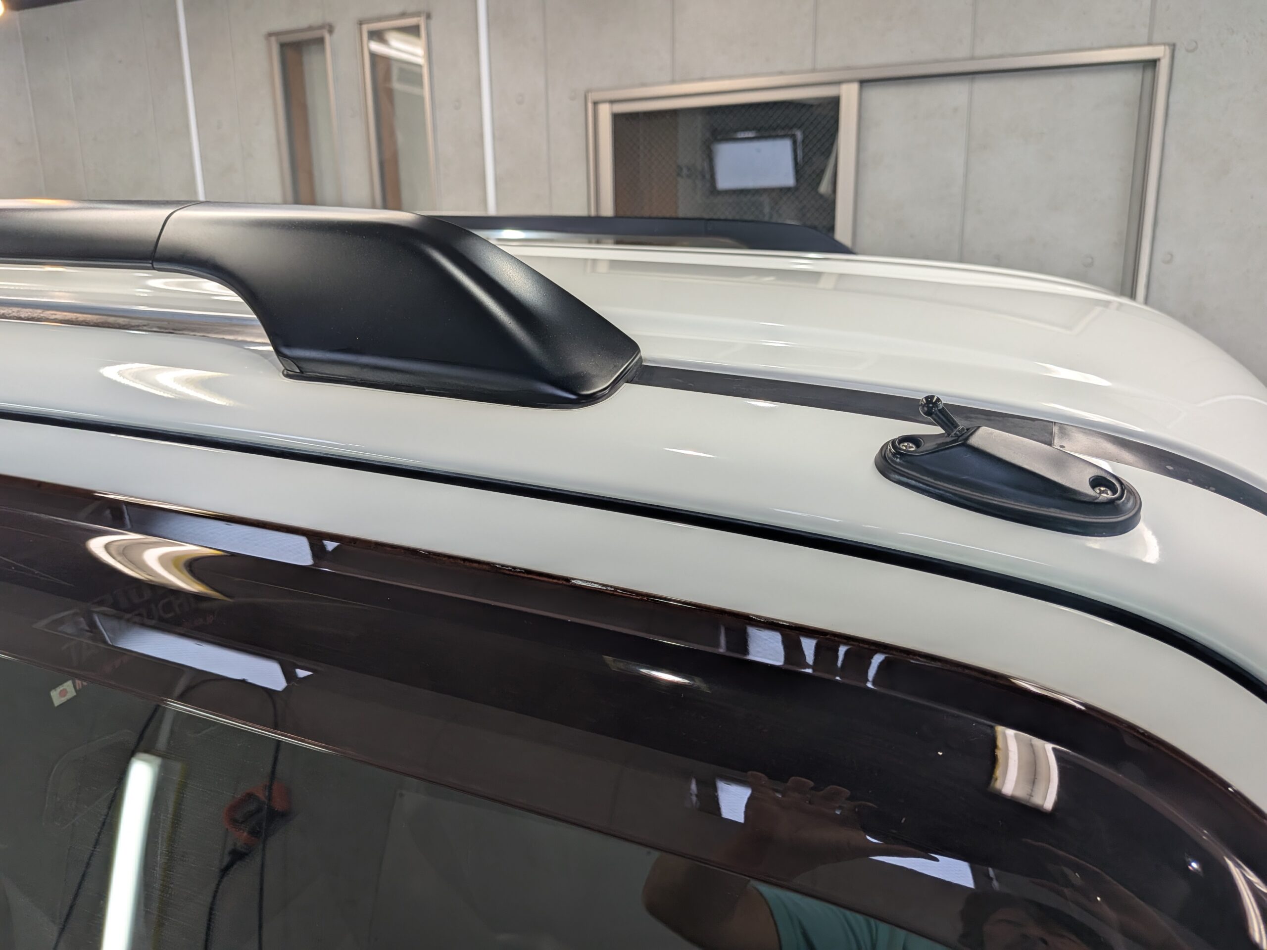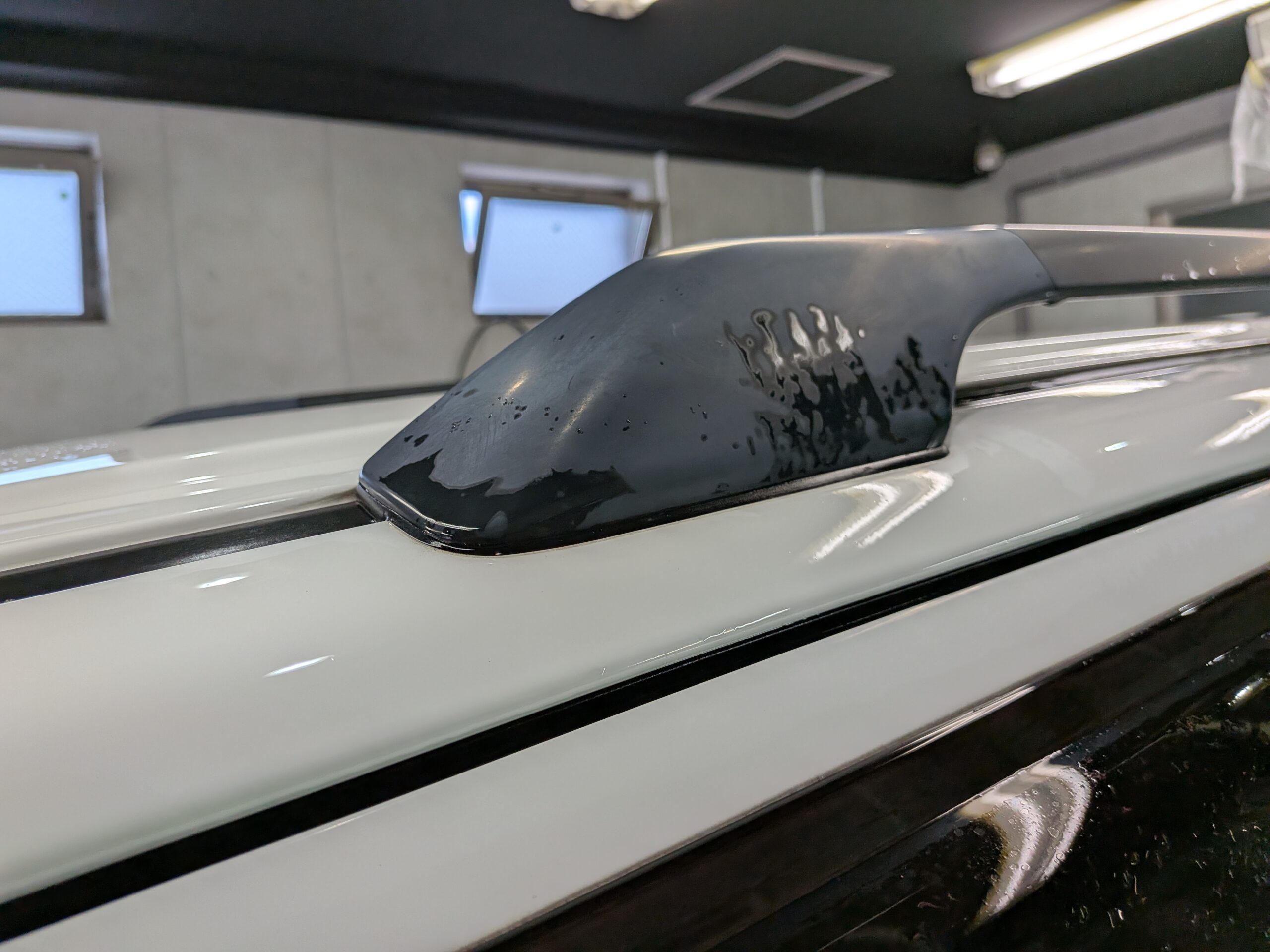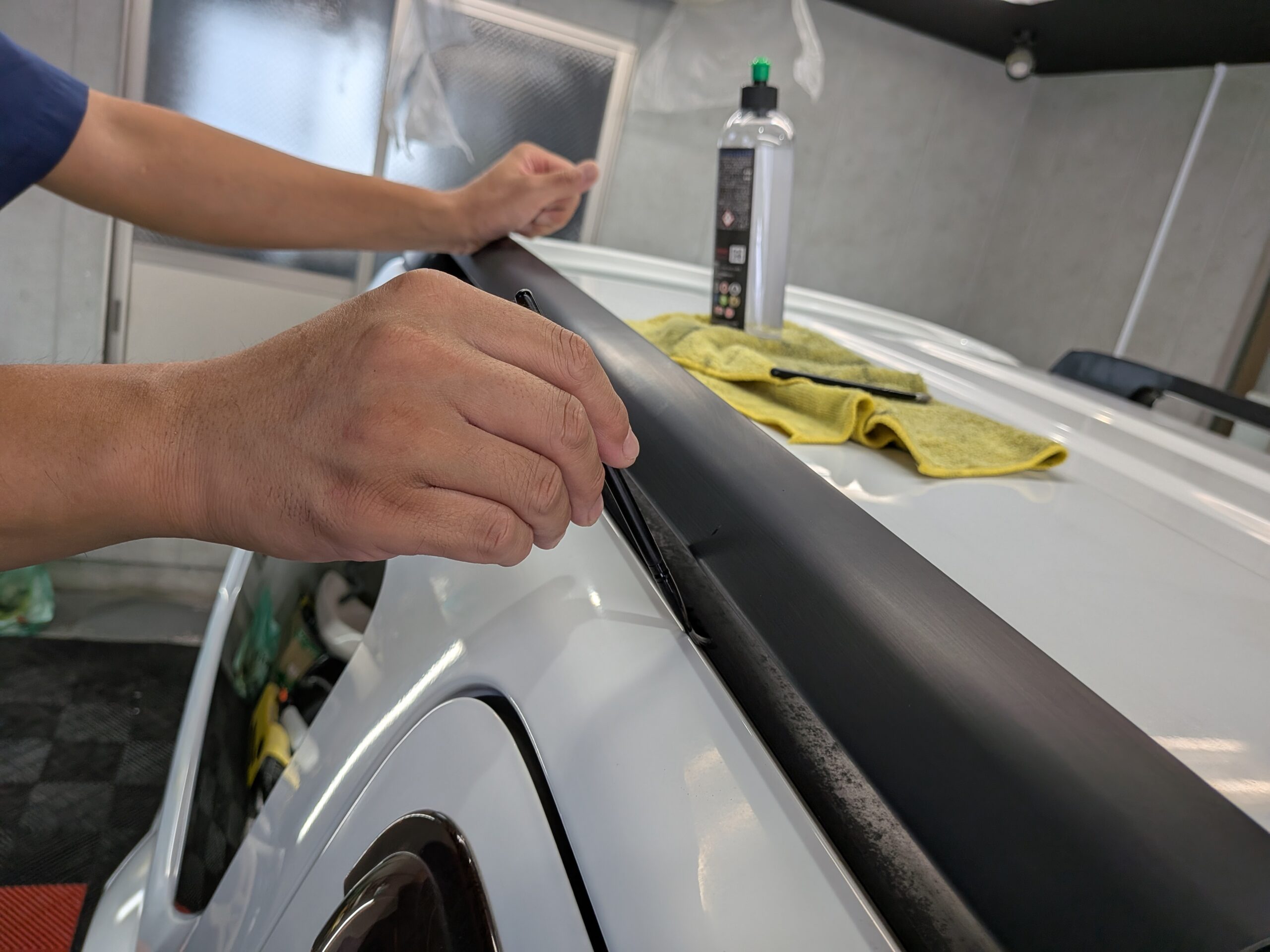 先に行った洗車とは違う塗装のための洗浄を、カウルトップとルーフレールに実施いたします