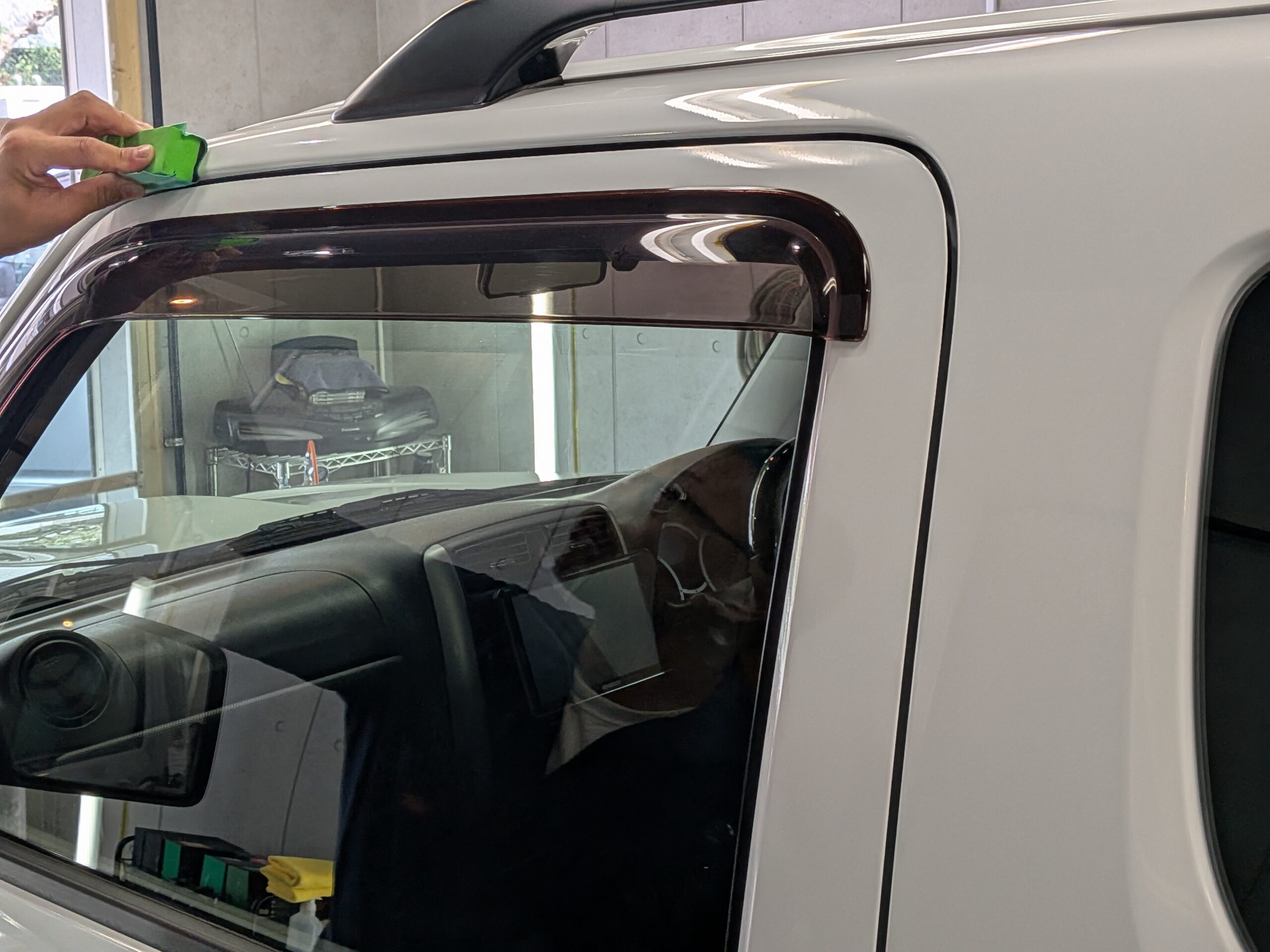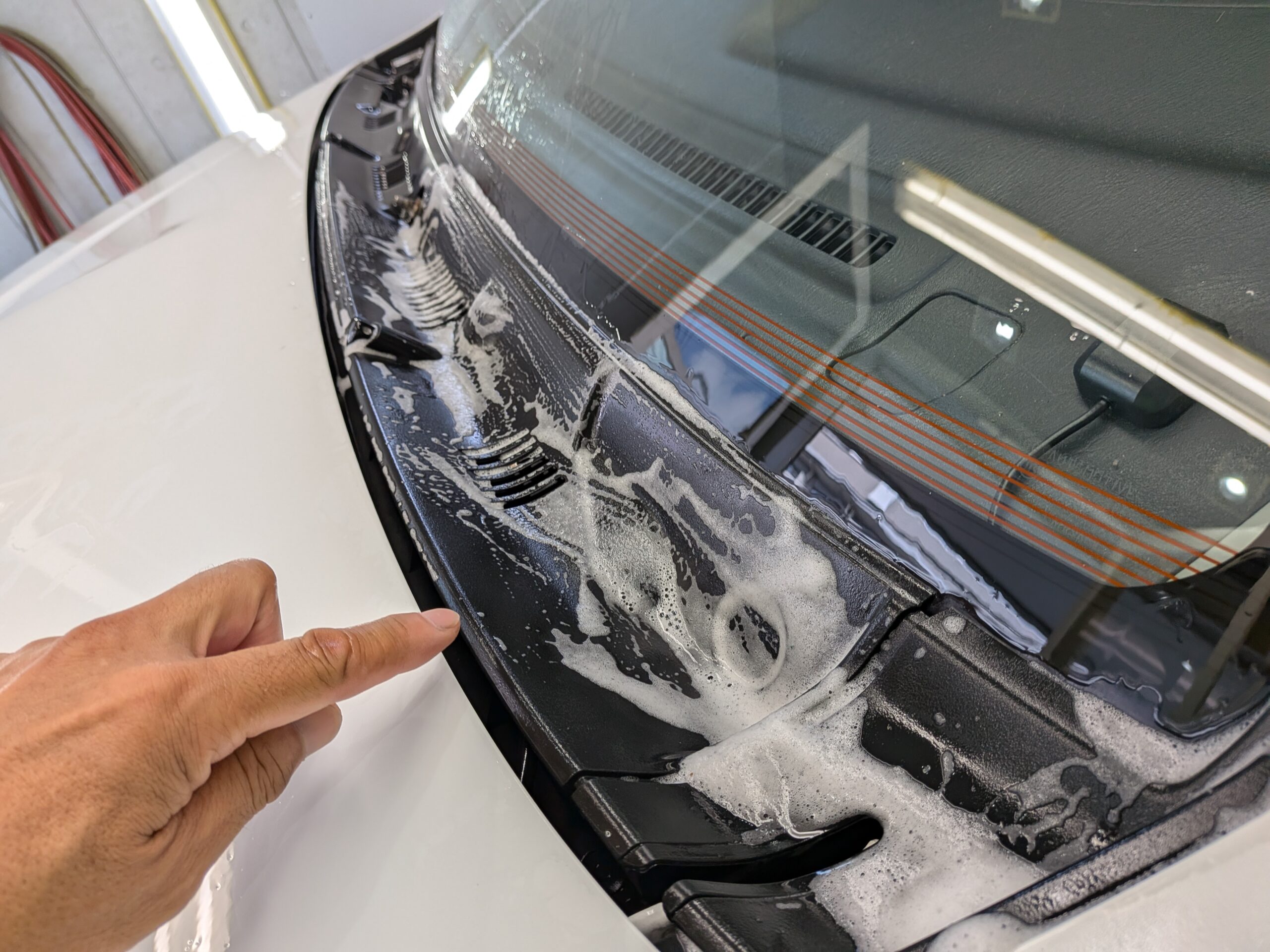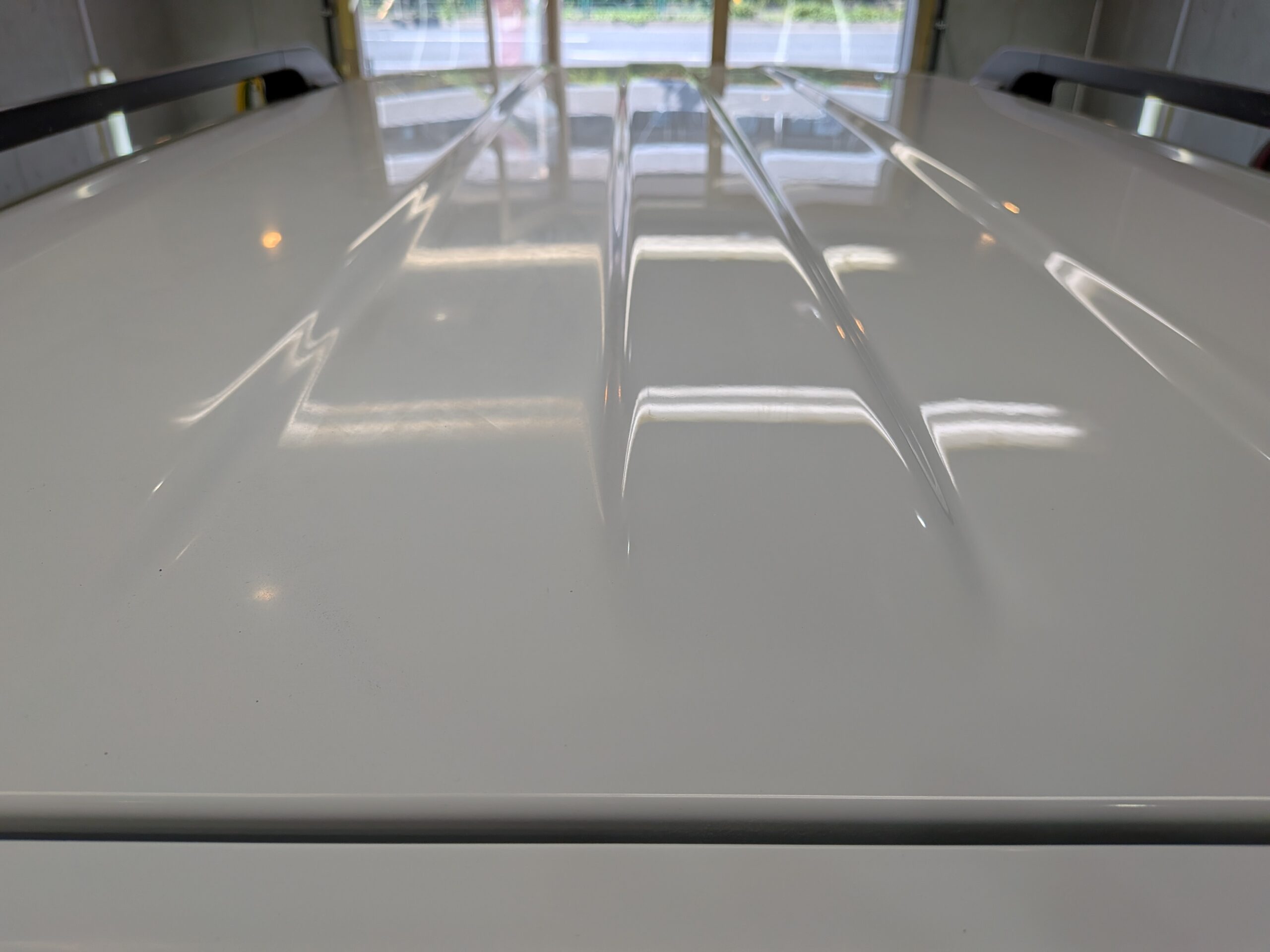 先に行った洗車とは違う塗装のための洗浄を、カウルトップとルーフレールに実施いたします
