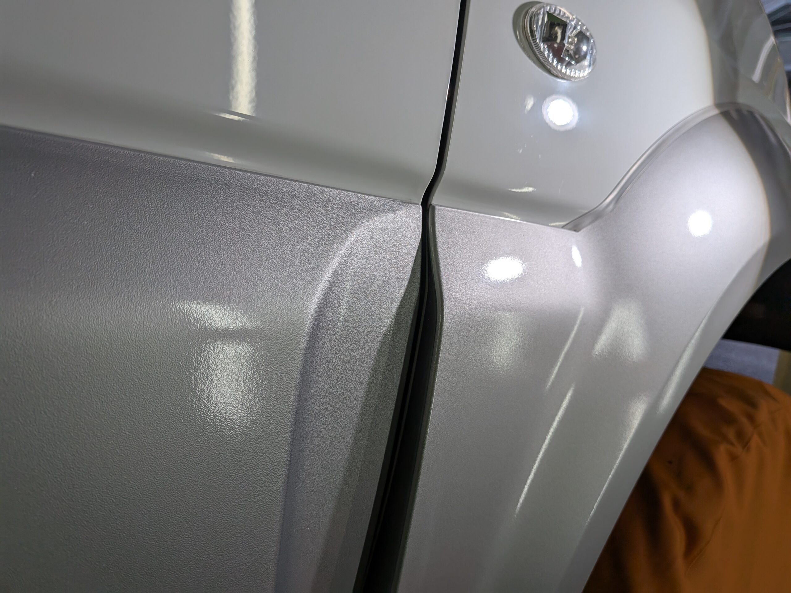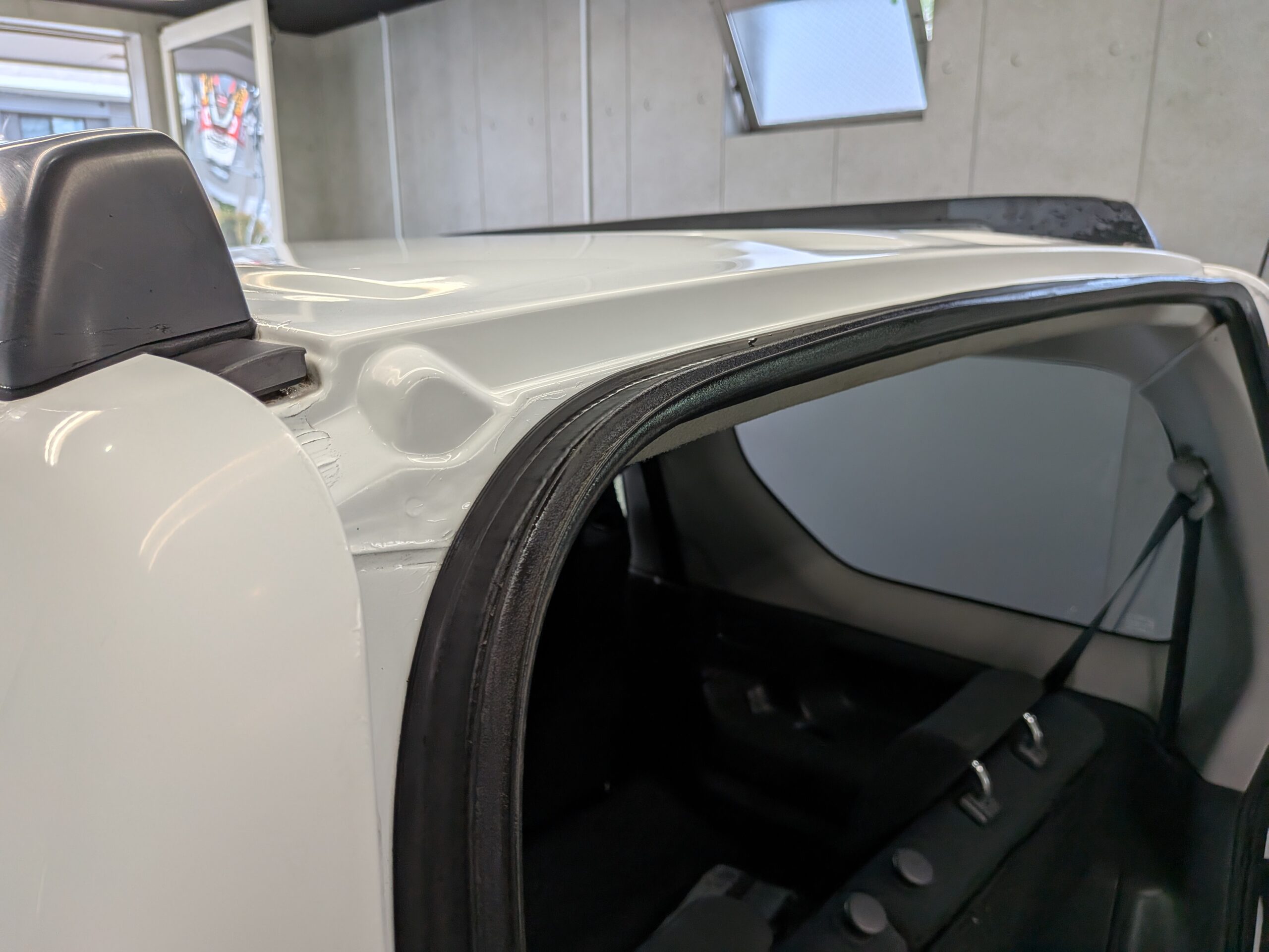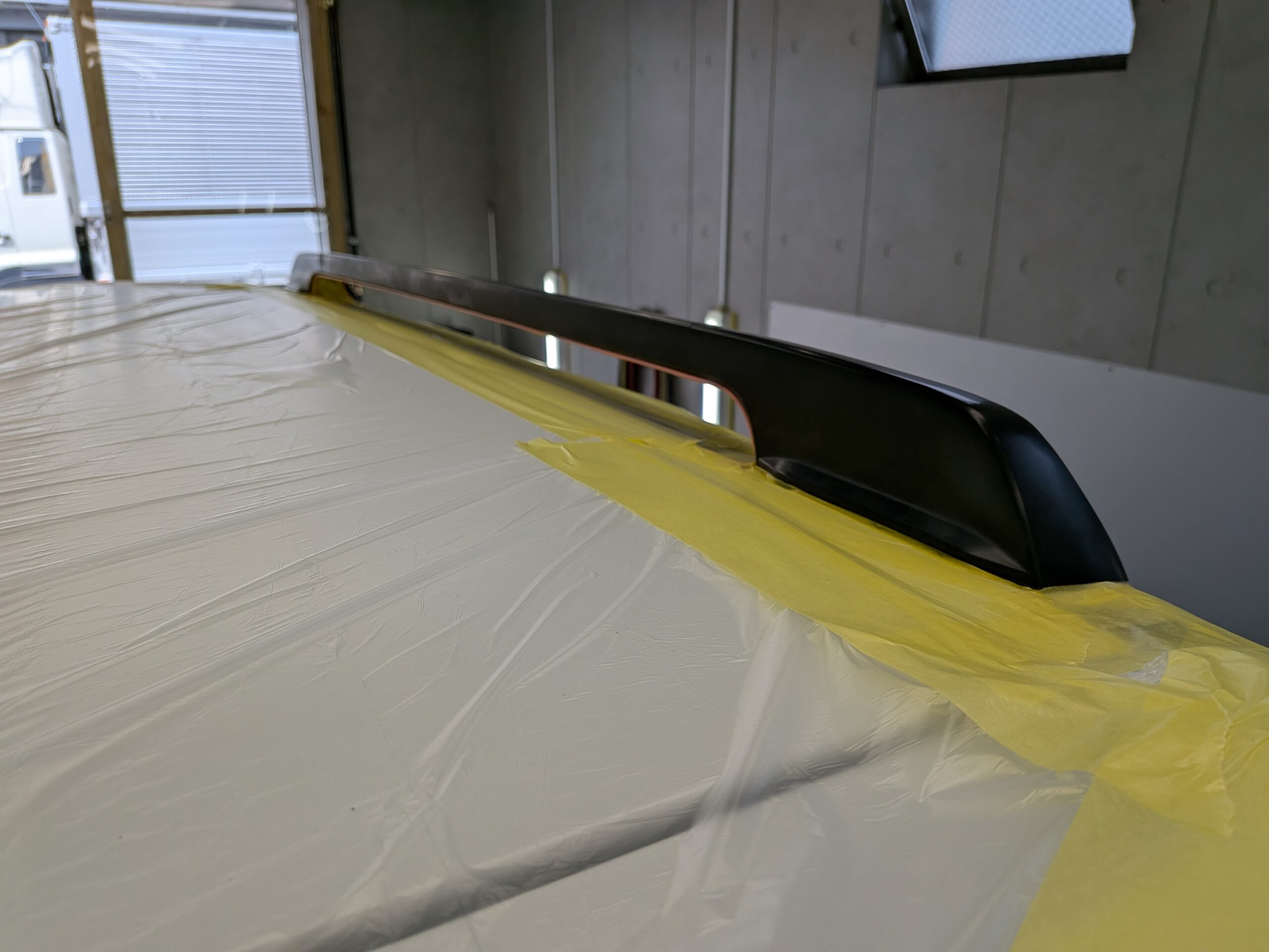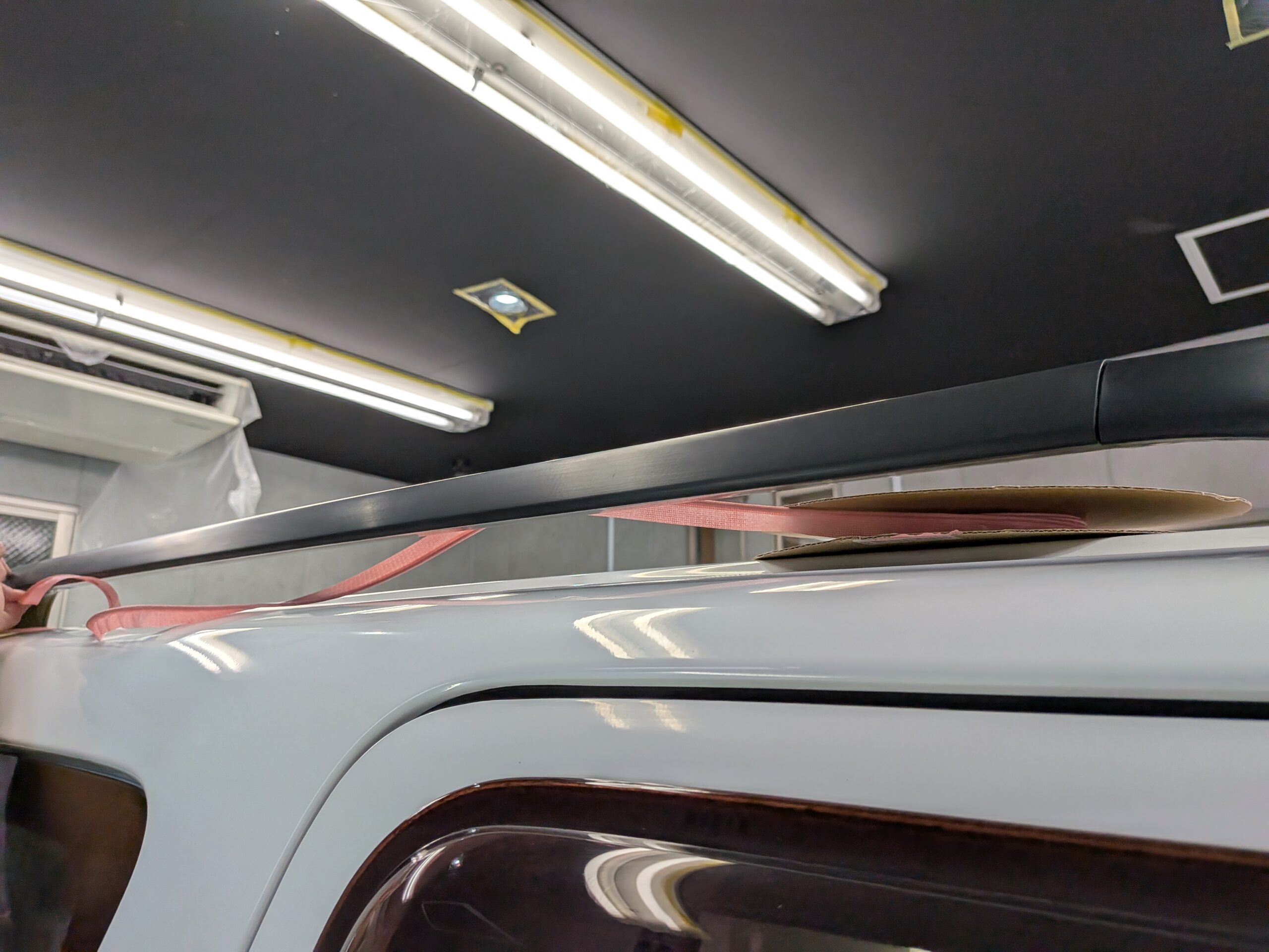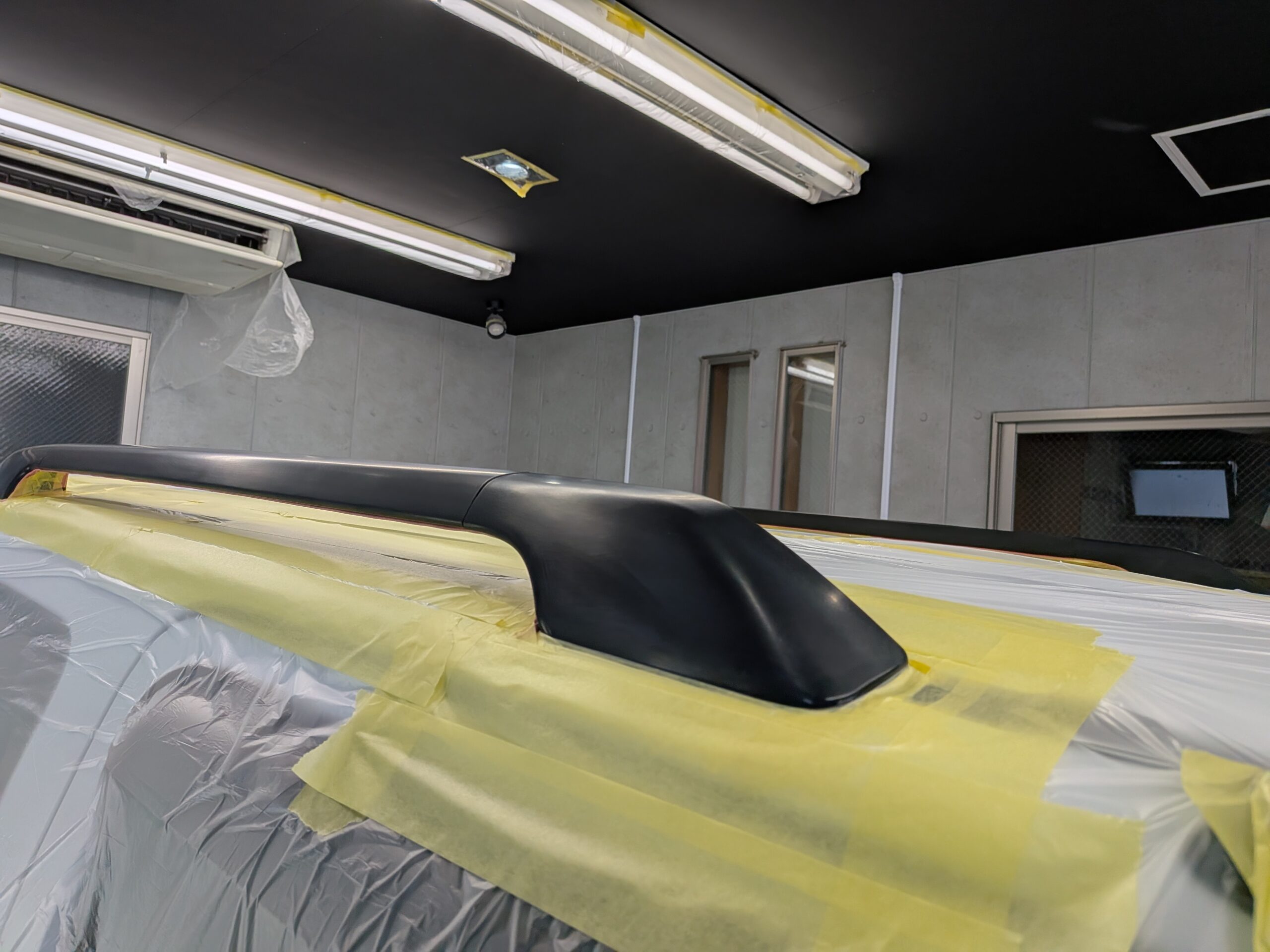 それらの作業や、これから行います研磨作業でも再生できない、このルーフレールとカウルトップのヤレは今回黒く塗装させていただきます