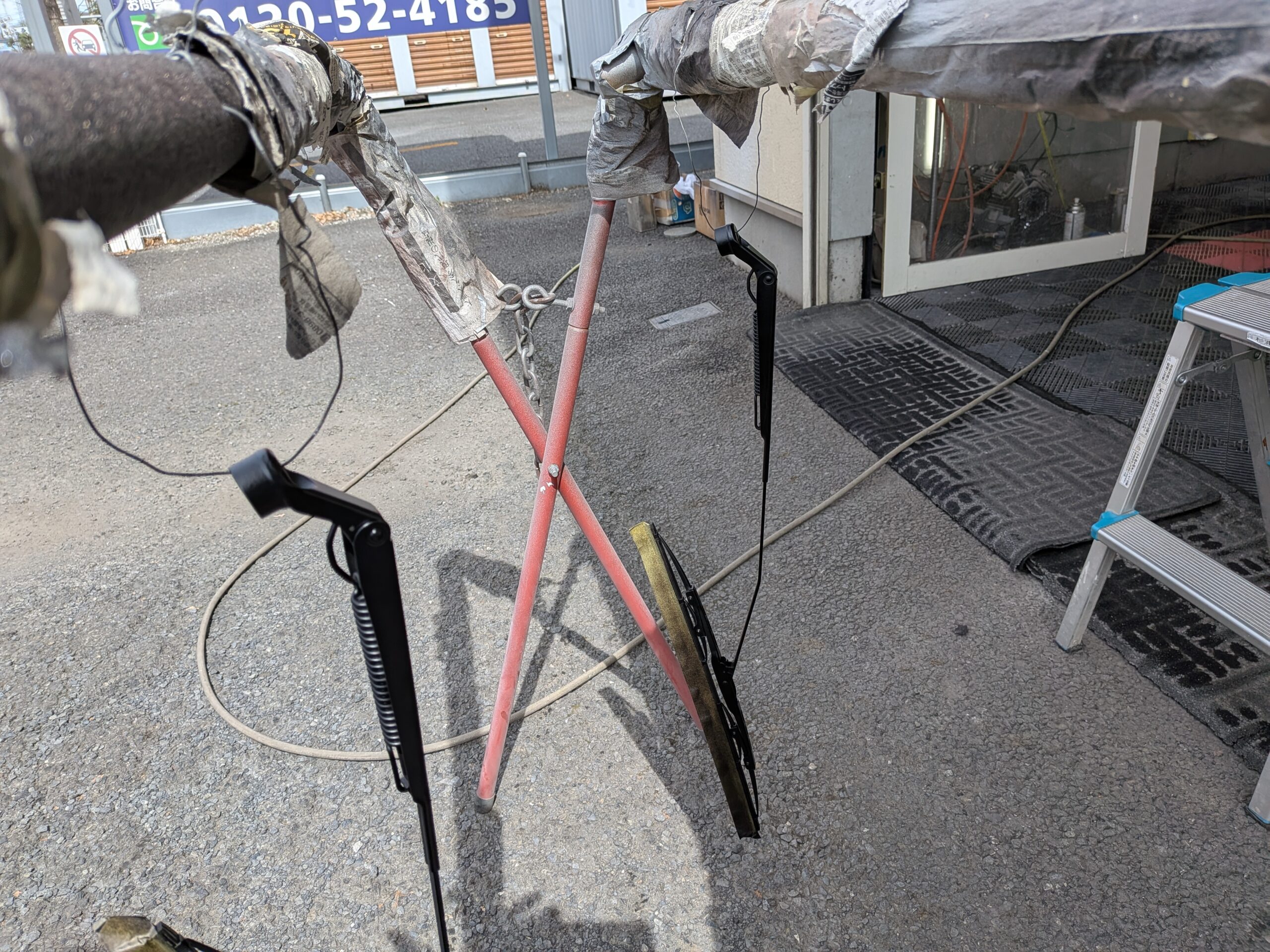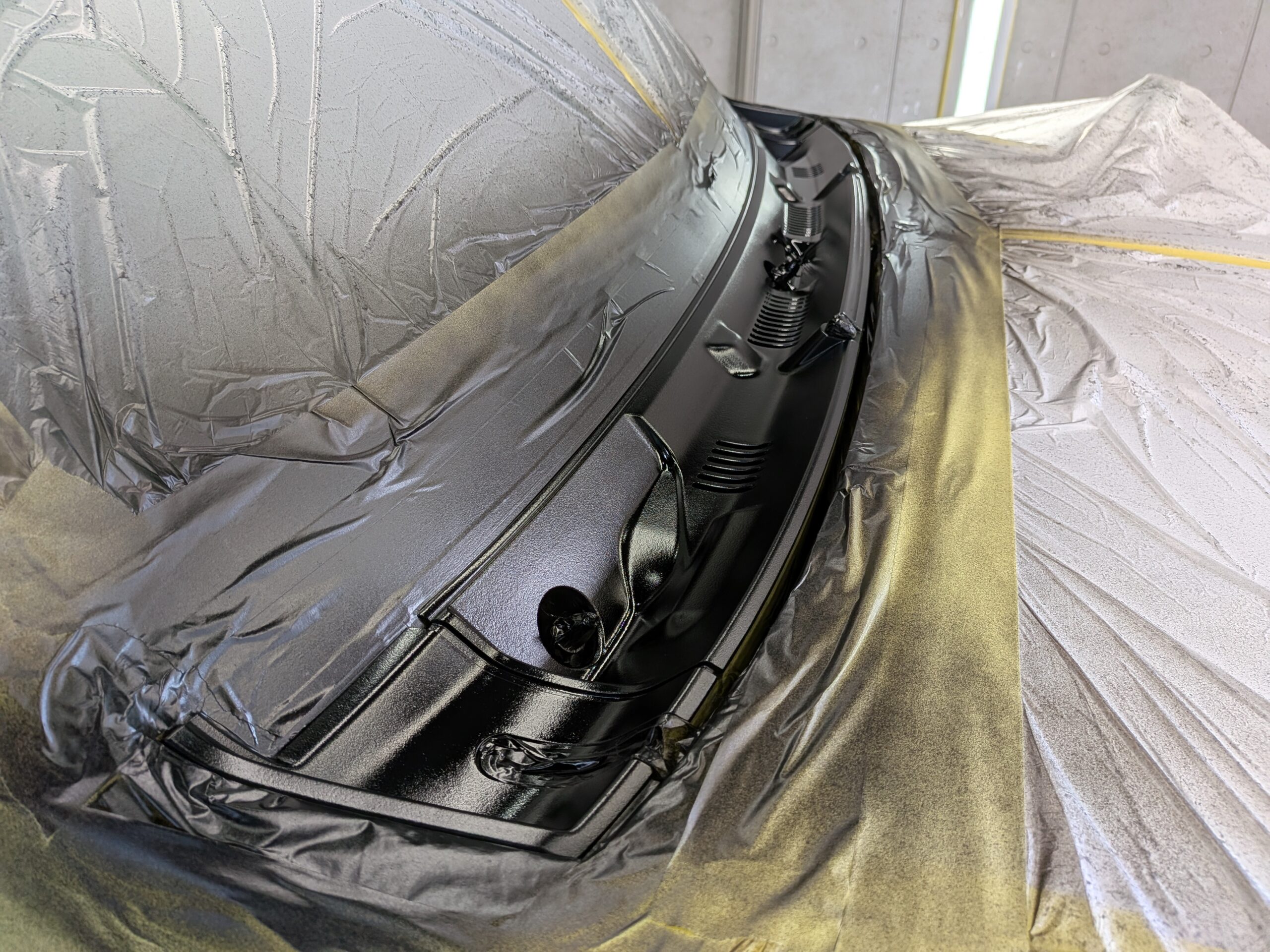 ワイパーもせっかくなので塗り直しました。艶度合いはこんな感じで調整しました。艶過ぎると安っぽい感じですし、マット過ぎも地味ですから、マットよりの半艶にしました
