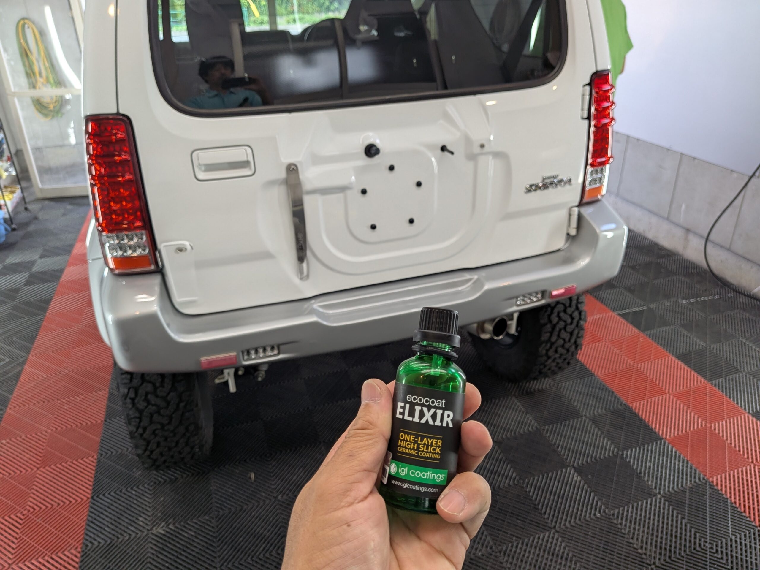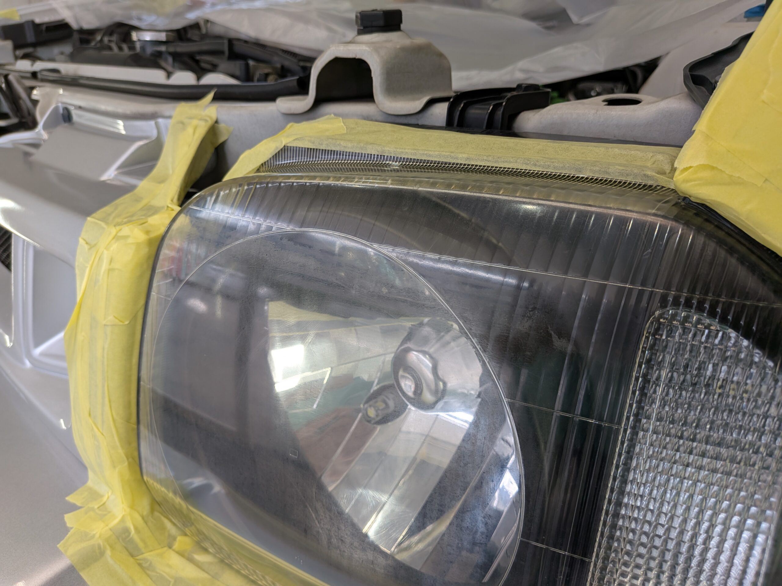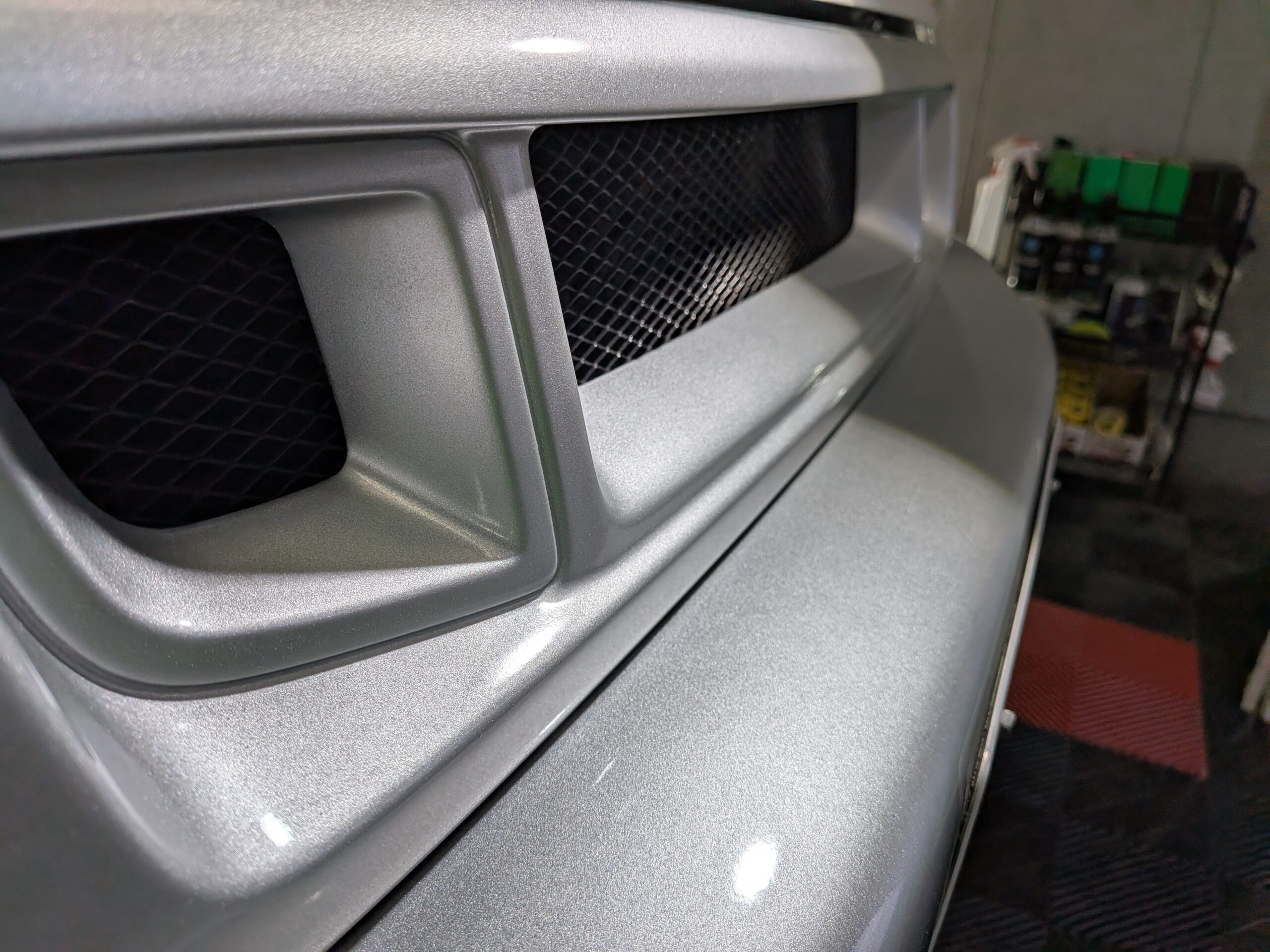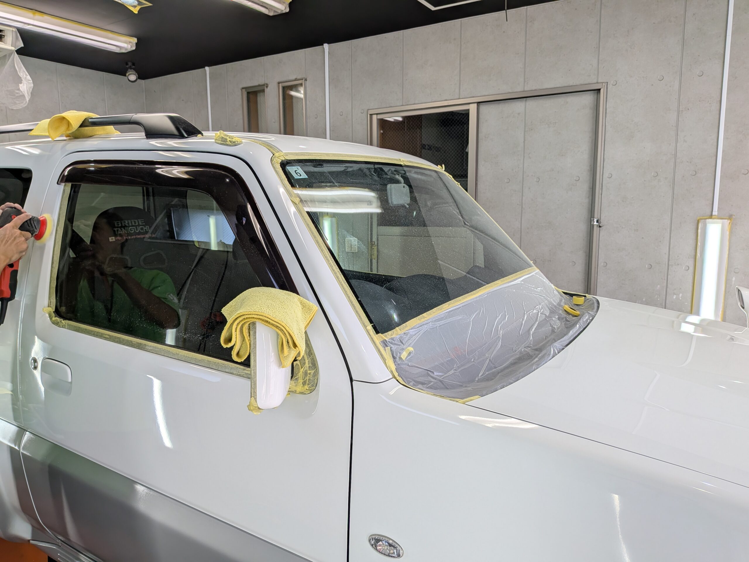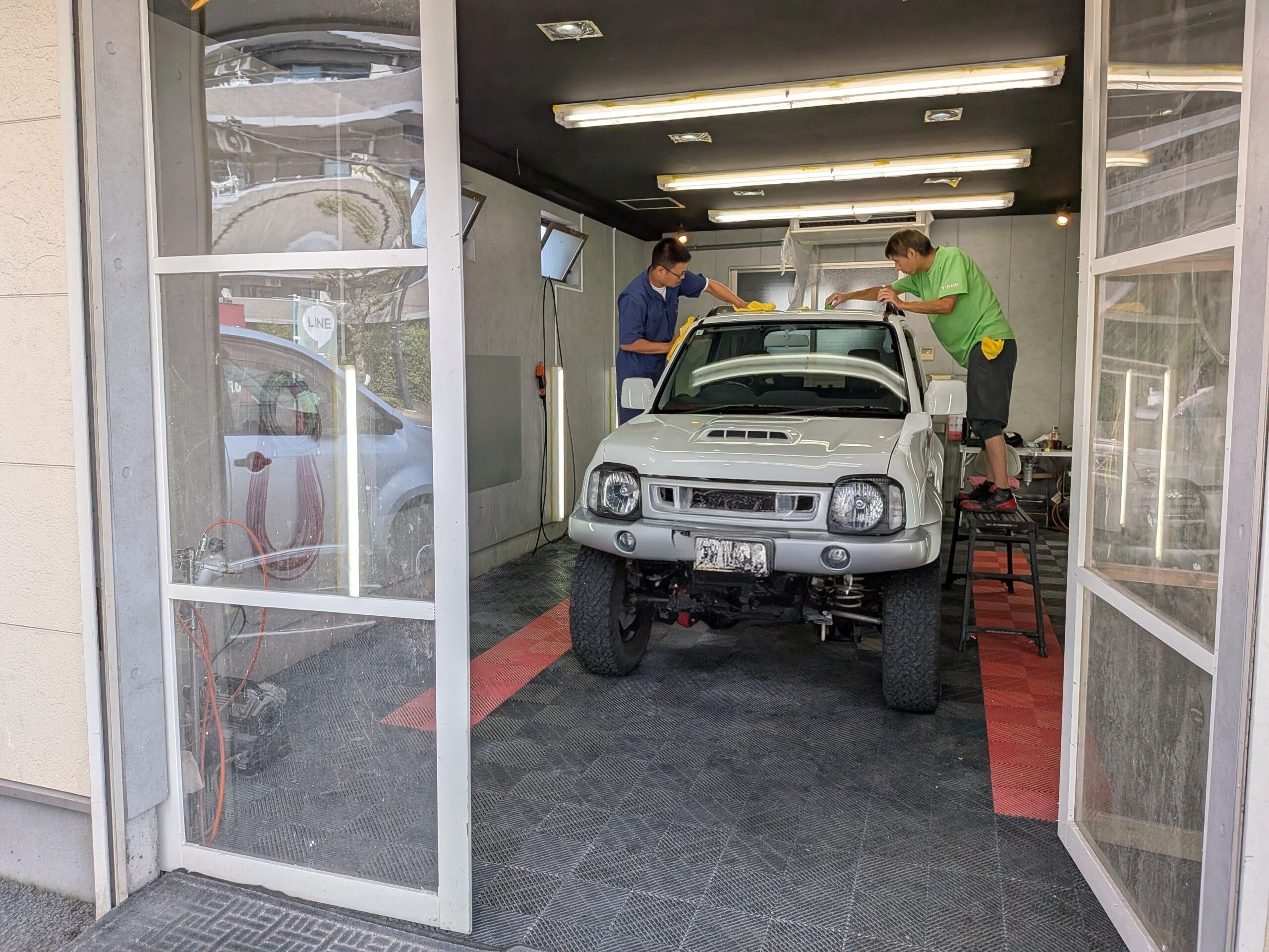 コーティングできるように、これまでの作業でついているコンパウンドや汚れなどチェックしながら清掃、脱脂作業などと行いました。