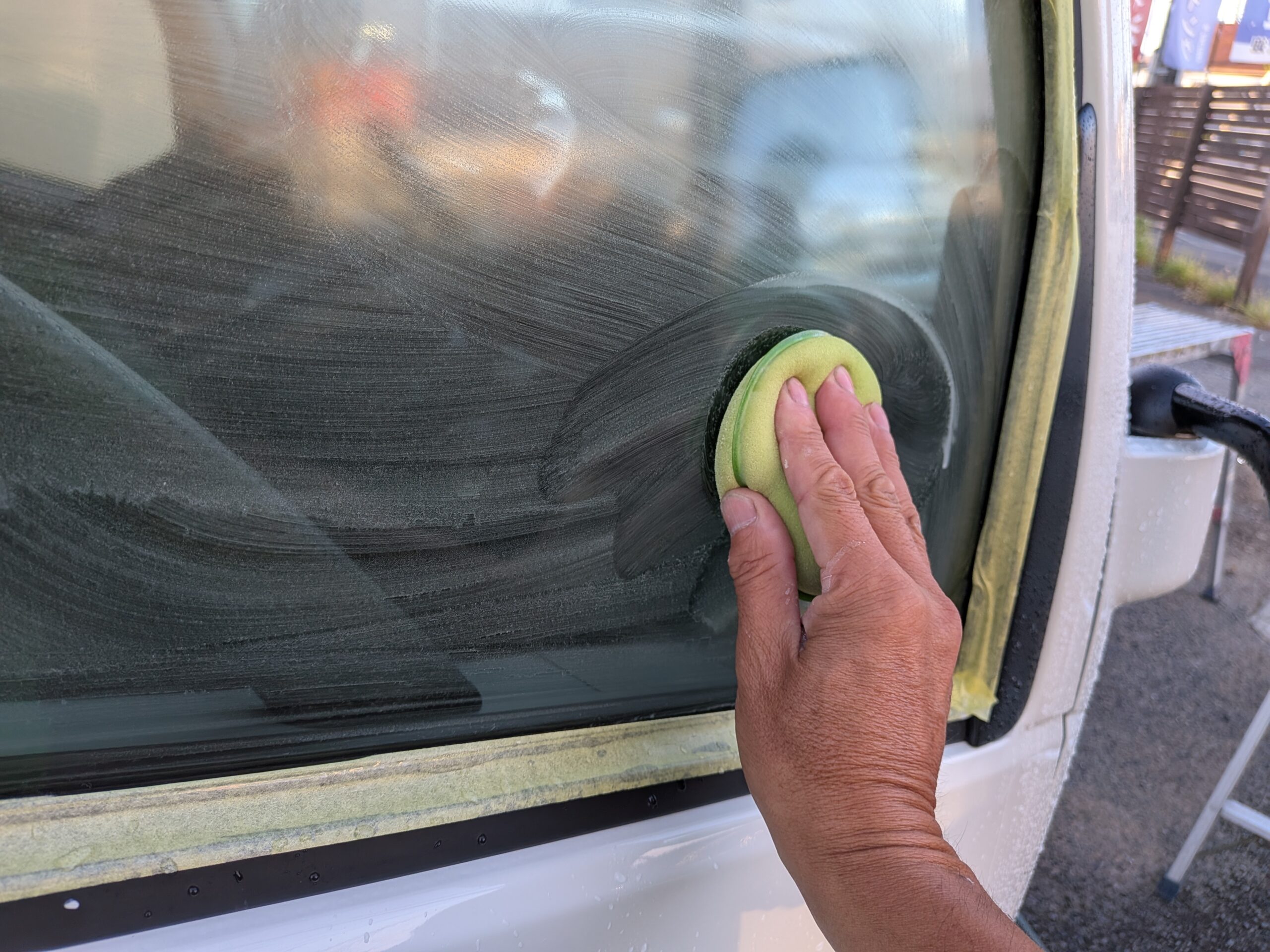 輪染み、油膜の処理をして後日のコーティングに備えます