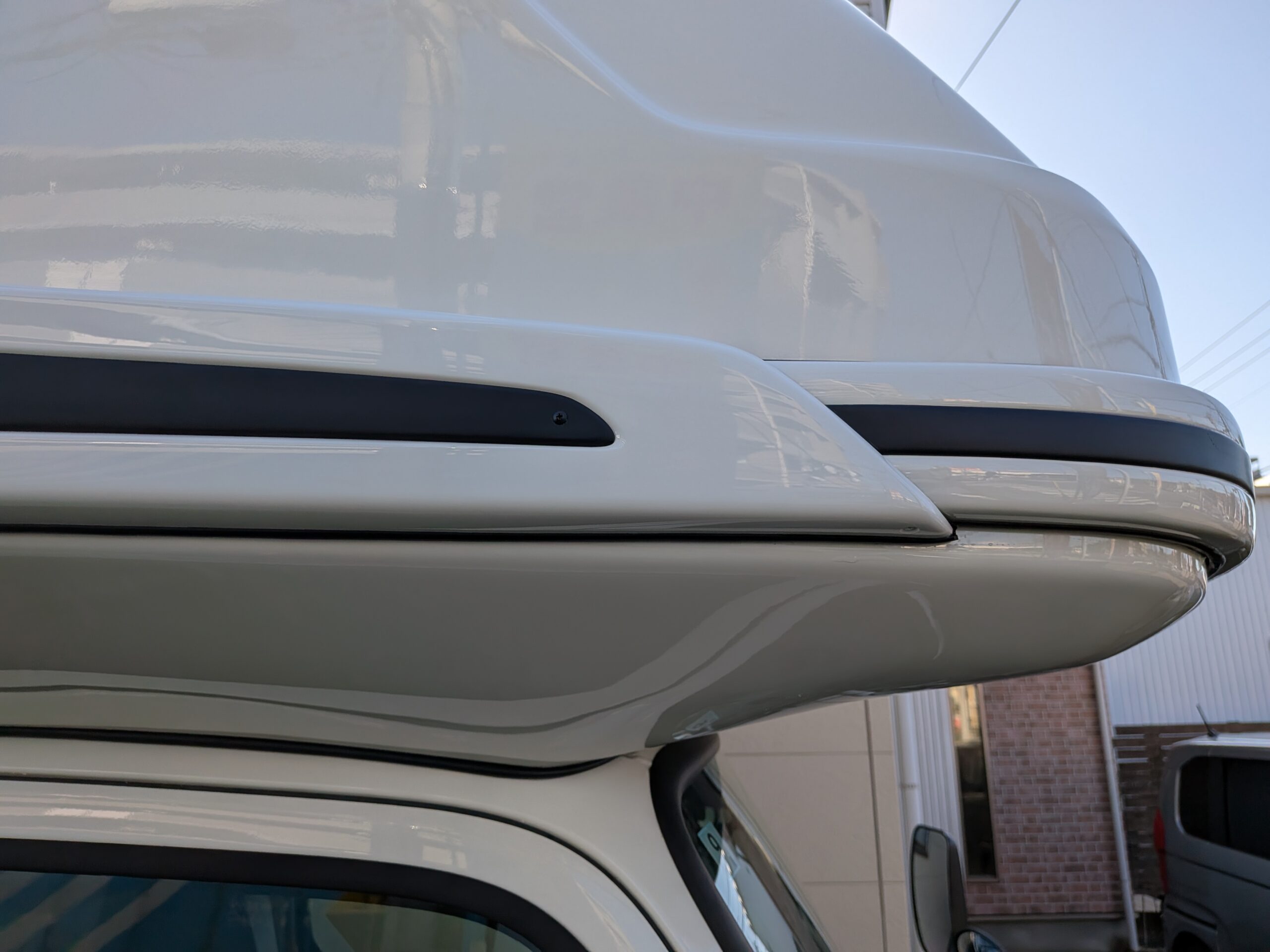 先日施工のジープニーも作業していて感じたのですが、このハチマキ部分の黒い素材の耐候性が少し心配です。