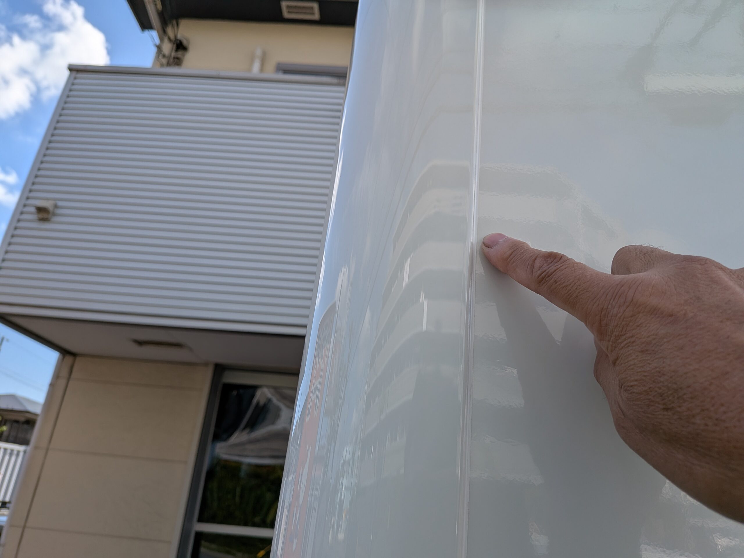 先にも触れたシーリングてすが、この細い部分も真っ白に戻しますとやはりスッキリしますね