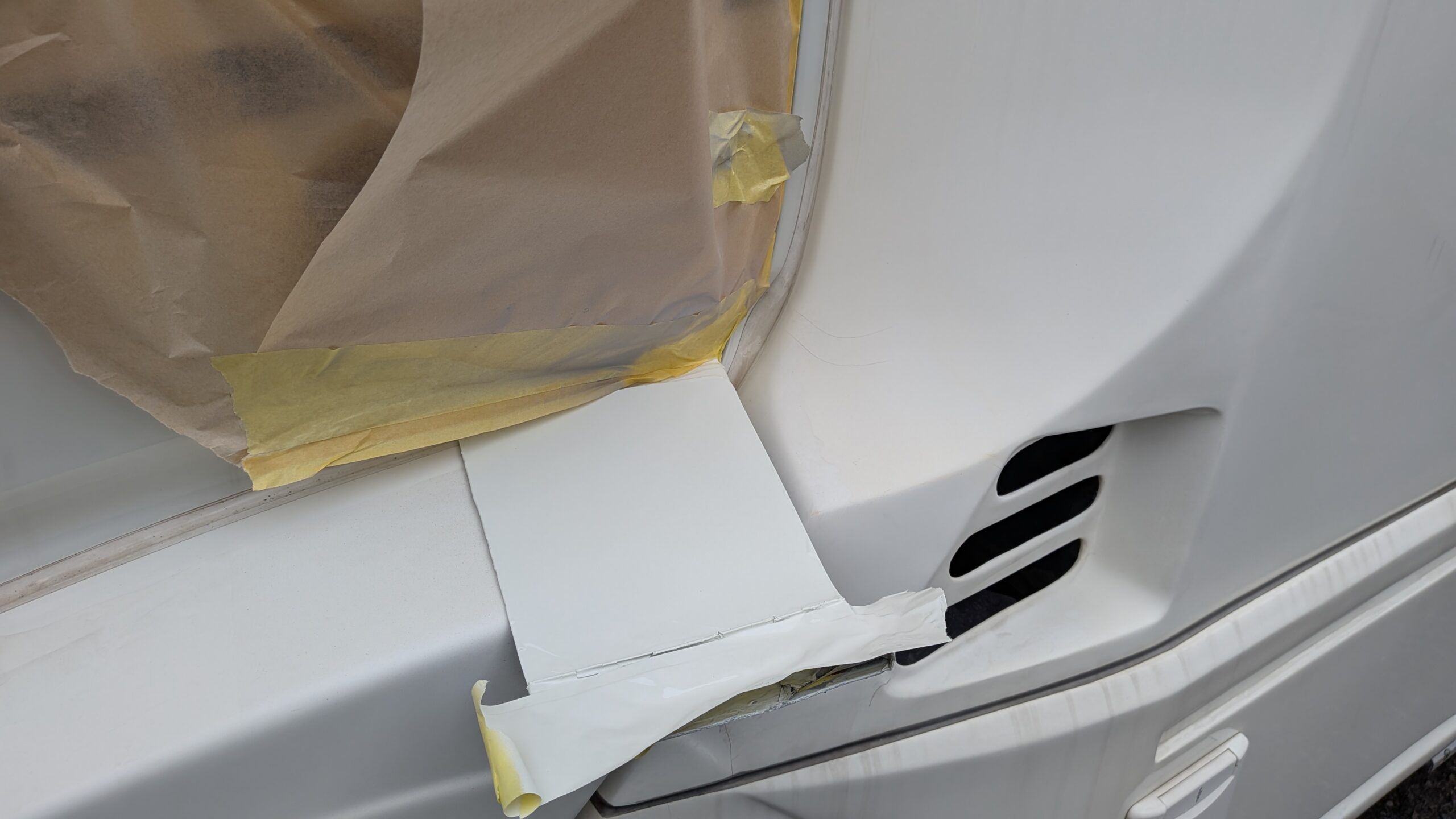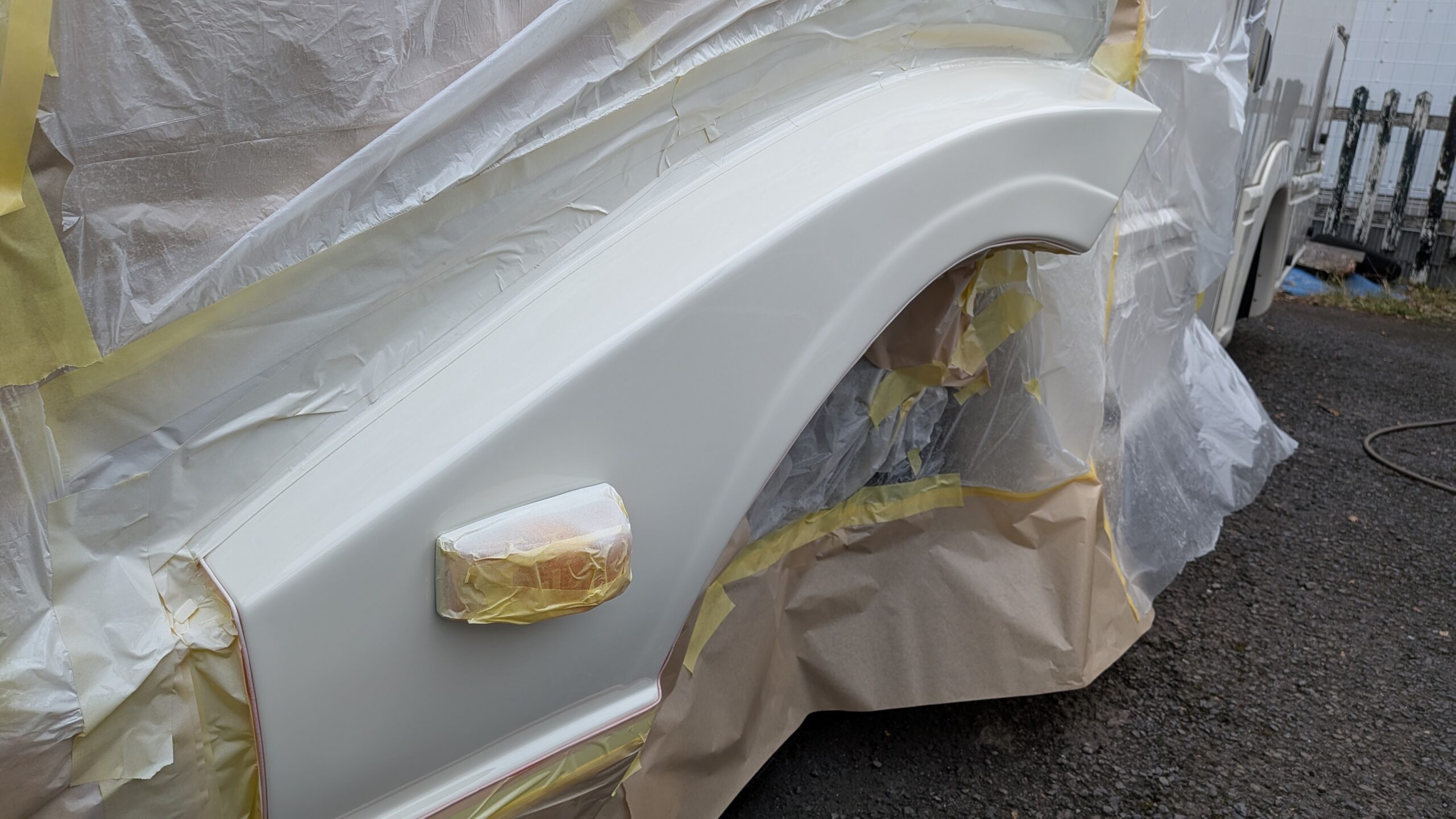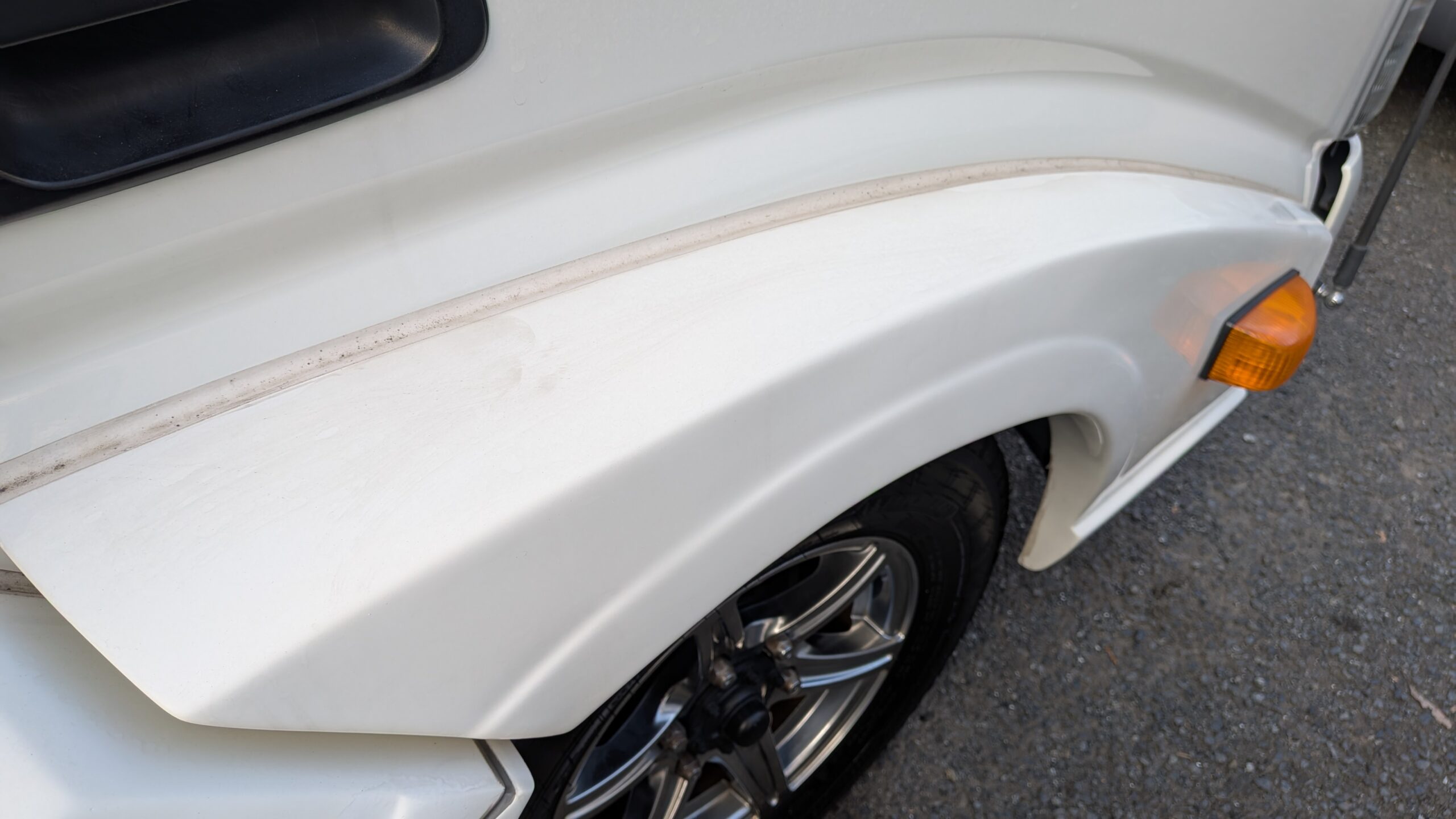 写真のとおり、パッキンからリヤ面は劣化再生クリアーで、パッキンから左側の側面は洗車のみとなります。