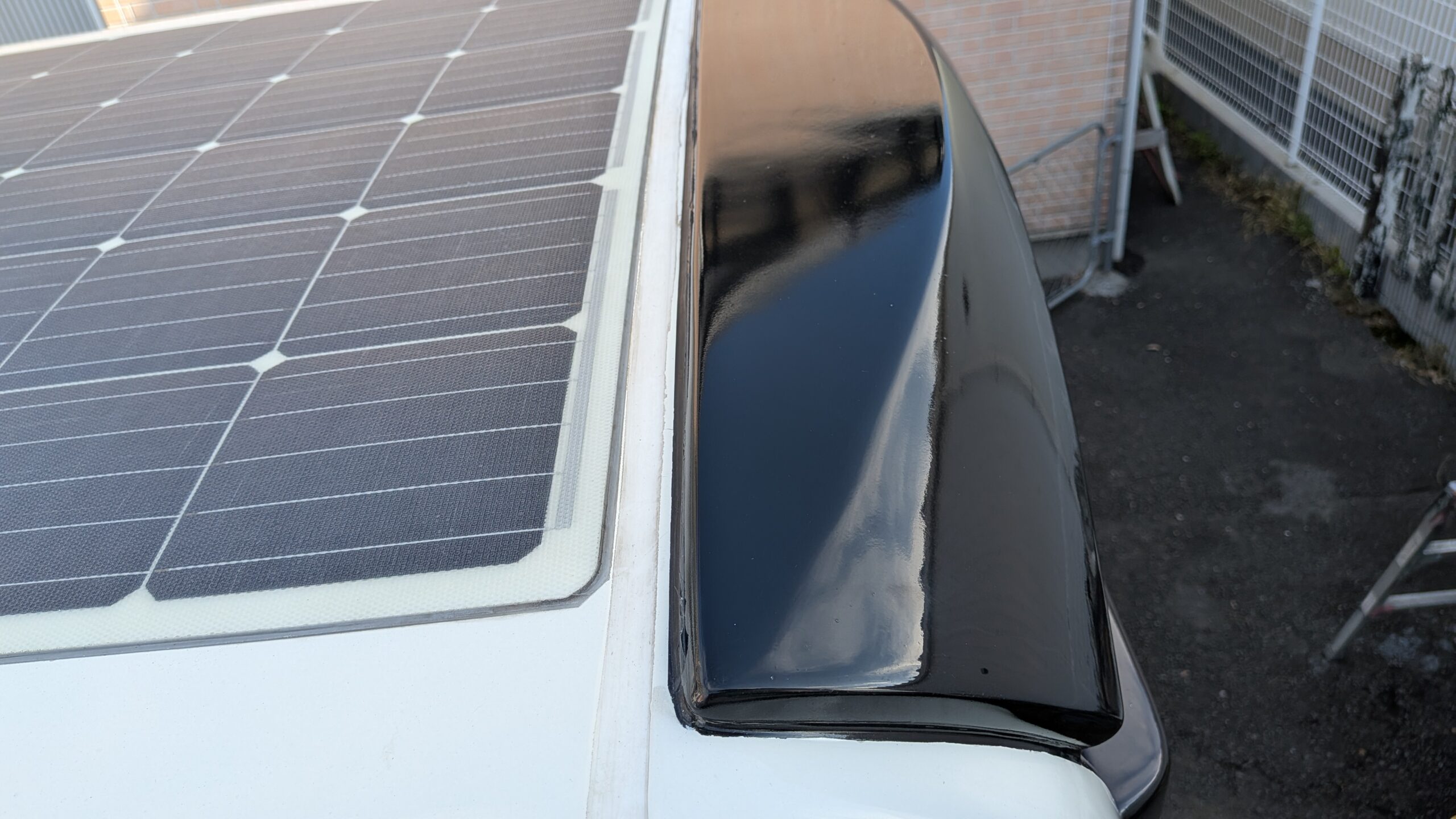 このあと塗装しないオーニングやベントカバーは磨きでクリーニングしまして、FRP面のバーコード汚れ、汚染物の処理などしました