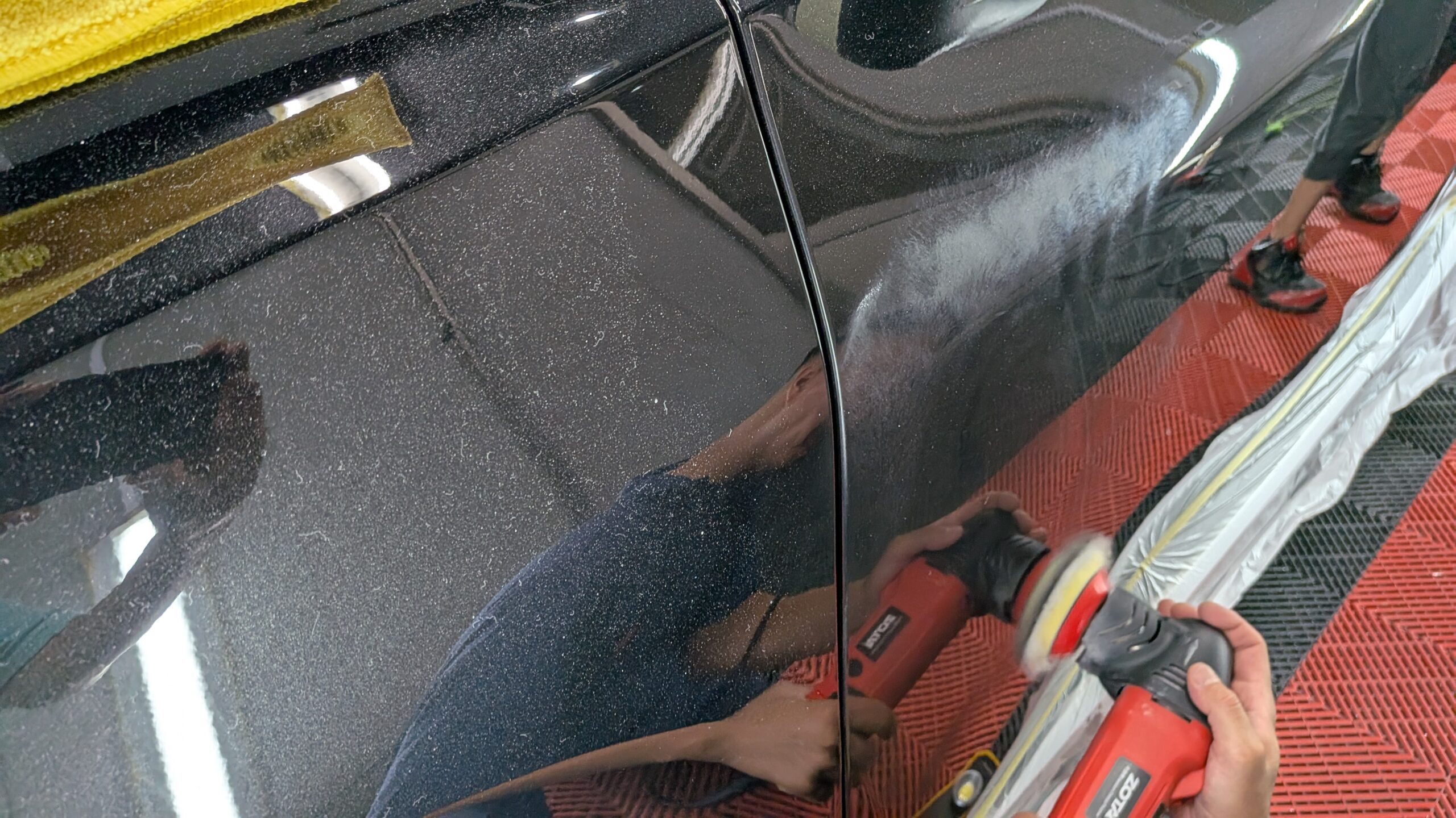 全体の研磨作業後は洗車で作業粉などを除去してコーティングの準備へと進めていきます