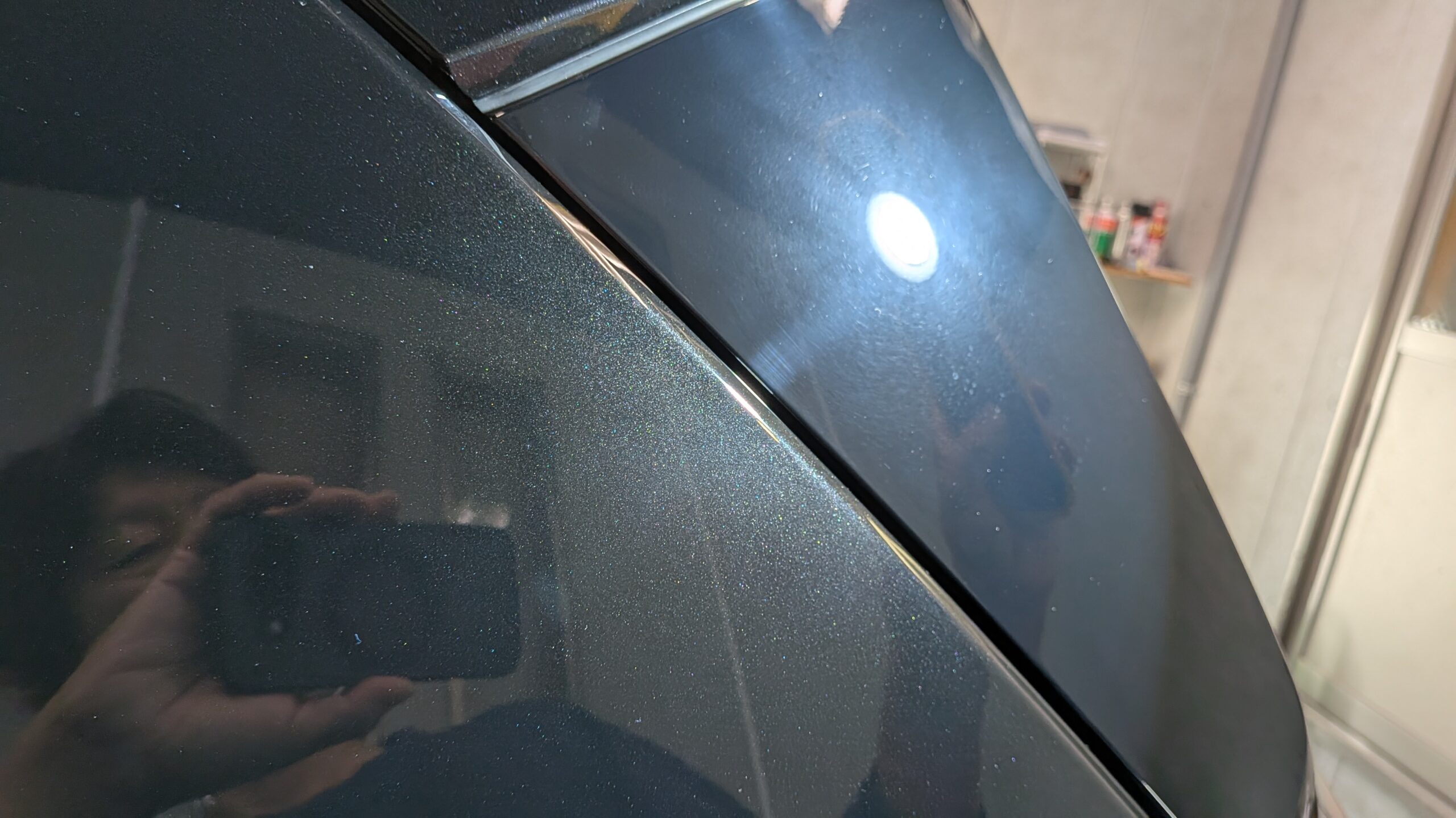 ということはおっしゃられていた樹脂部分にある白っぽくみえた線はコンパウンドかもしれません。どうしても販売店さんにまかせる作業は時間優先で磨きやコーティングなど納車準備も行われますからね