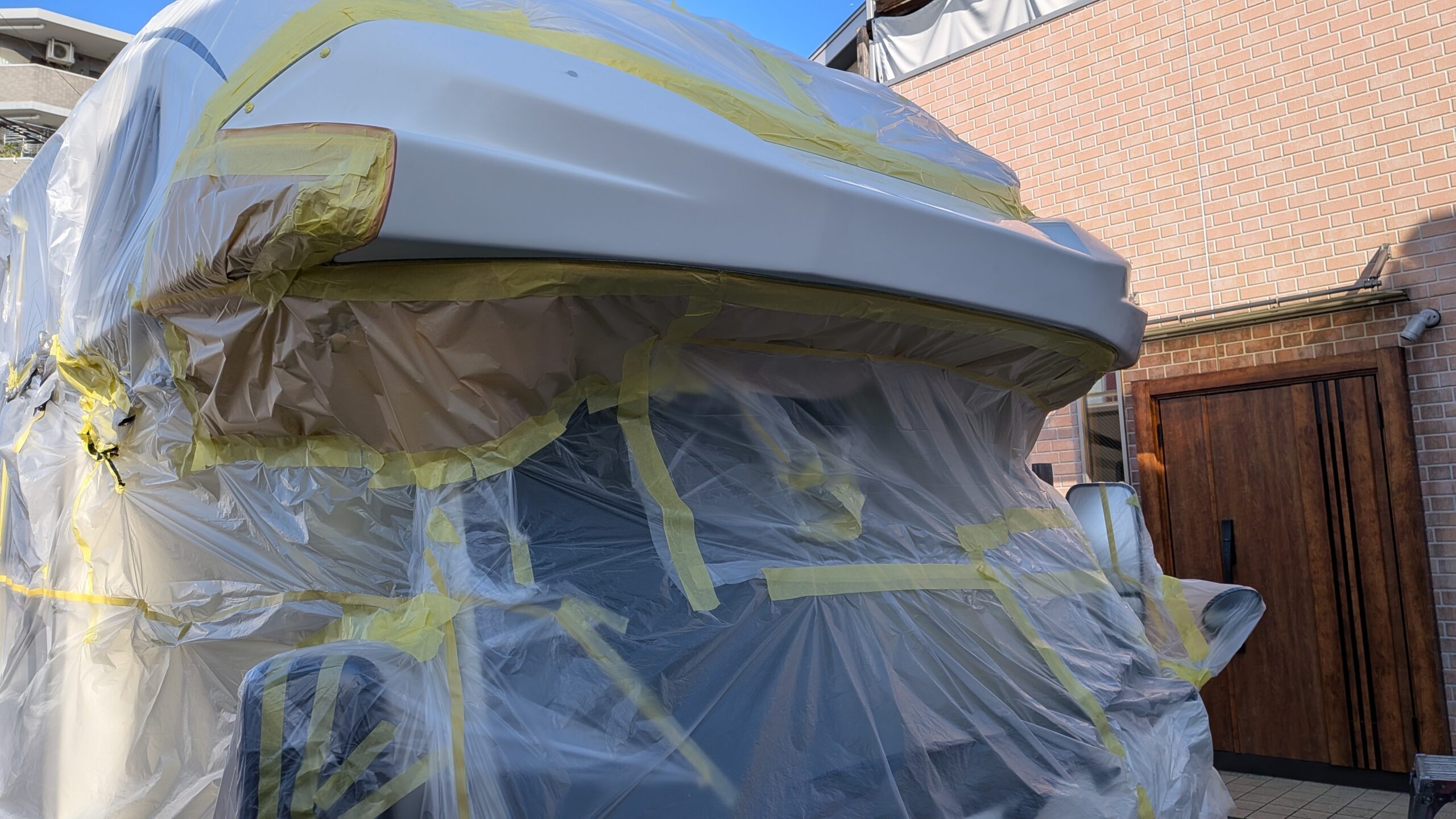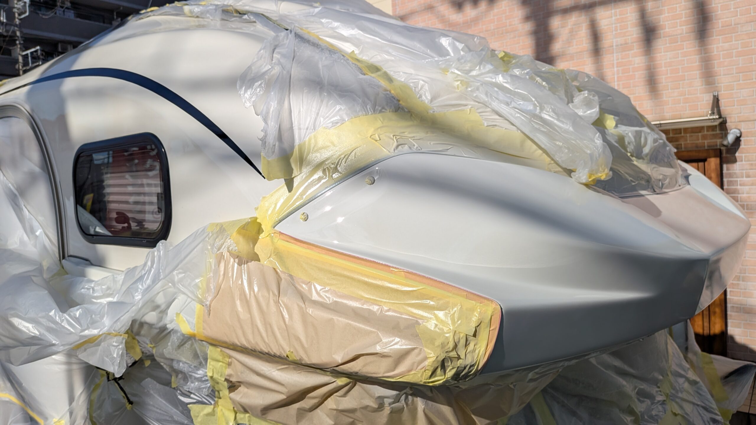 1日おいてブラック塗装部分のマスキングができますので、今日はホワイト塗装です
