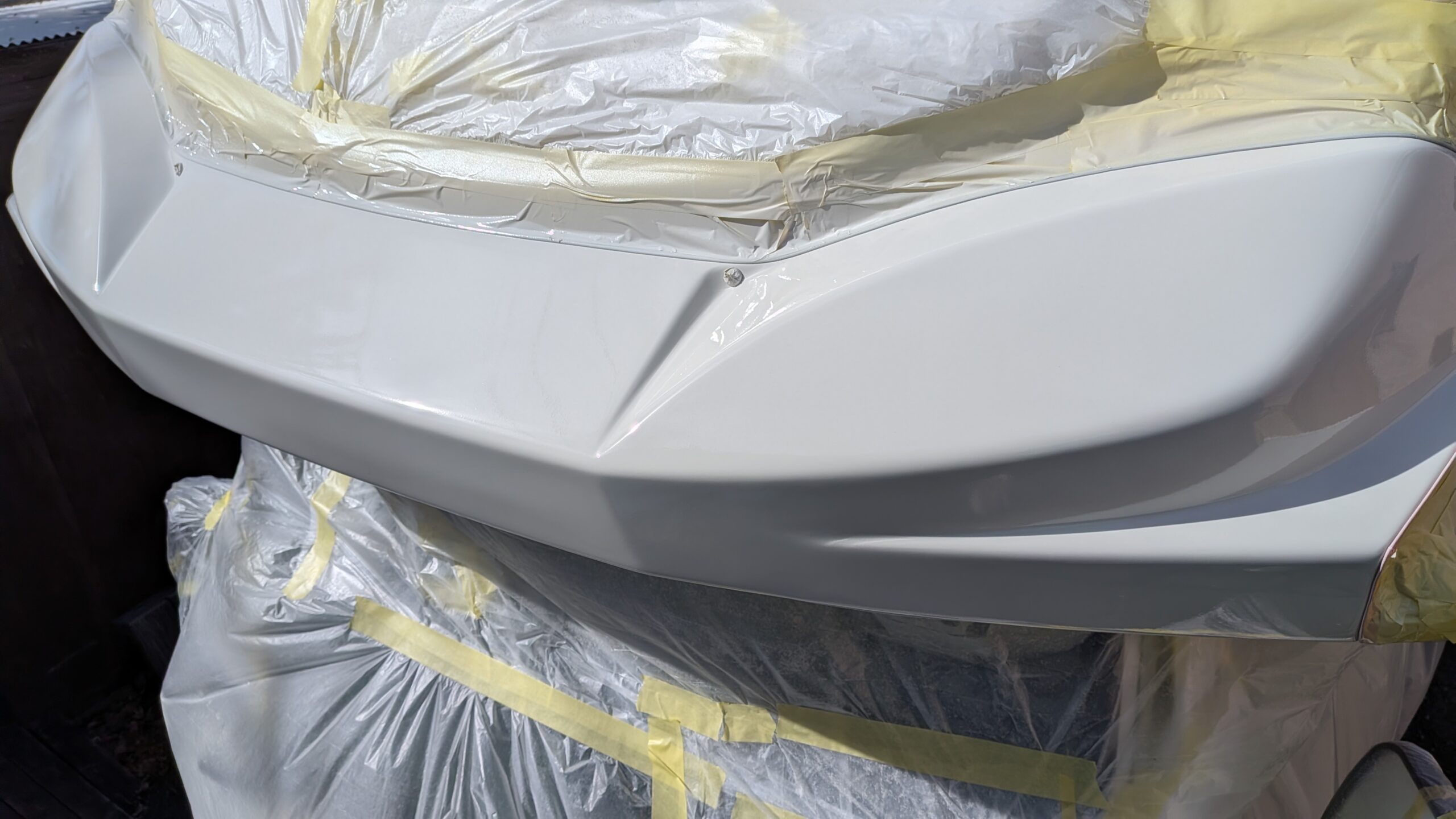 この軟性プラスチック類は塗装非推奨部材ではあるのですが、保護、艶再生をさせて、お喜びいただければと思いクリアー塗装をしたのですが、ご迷惑おかけする形となり申し訳ありません。