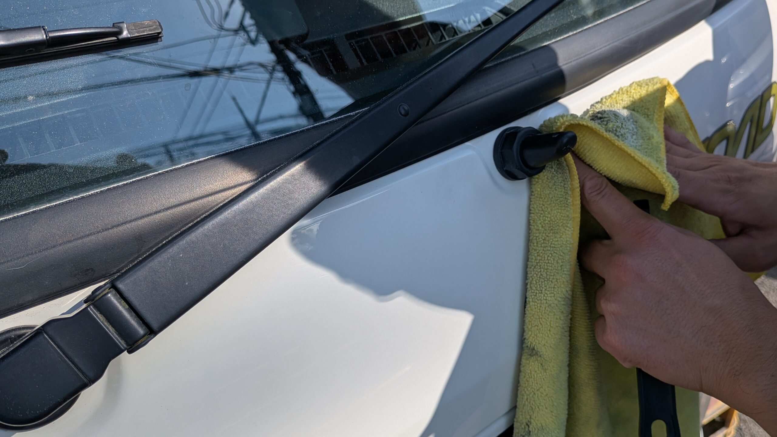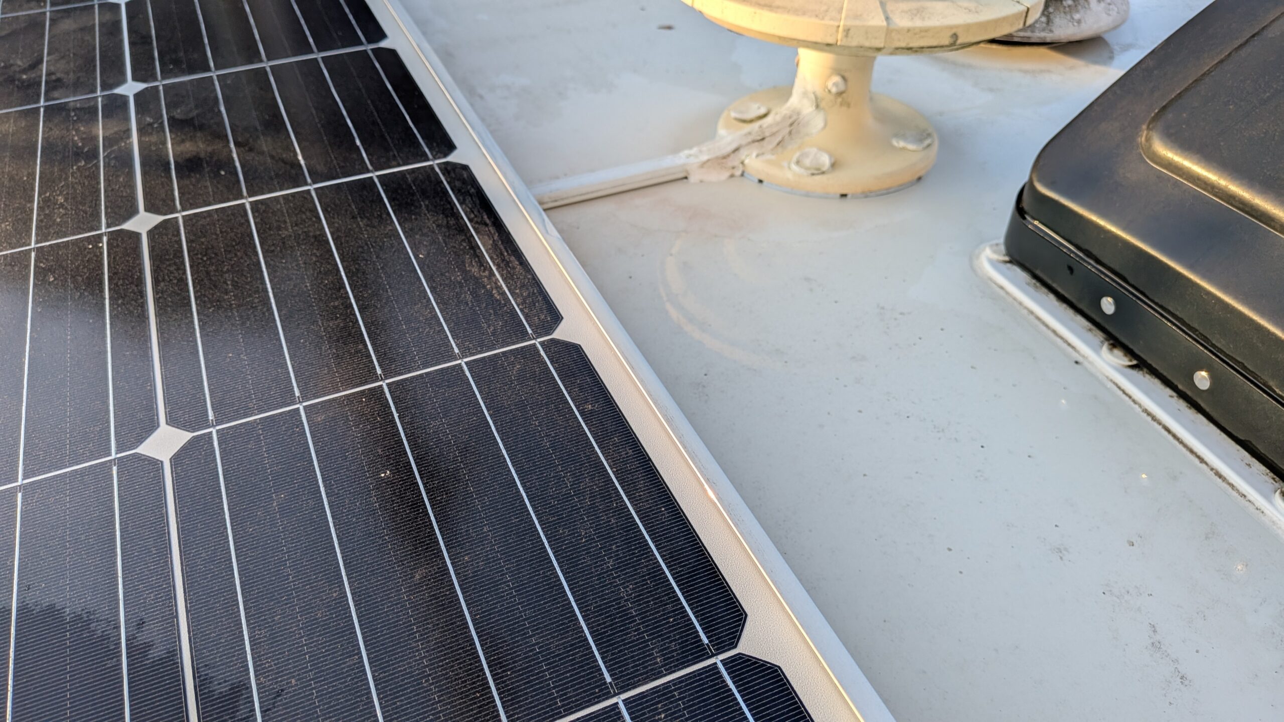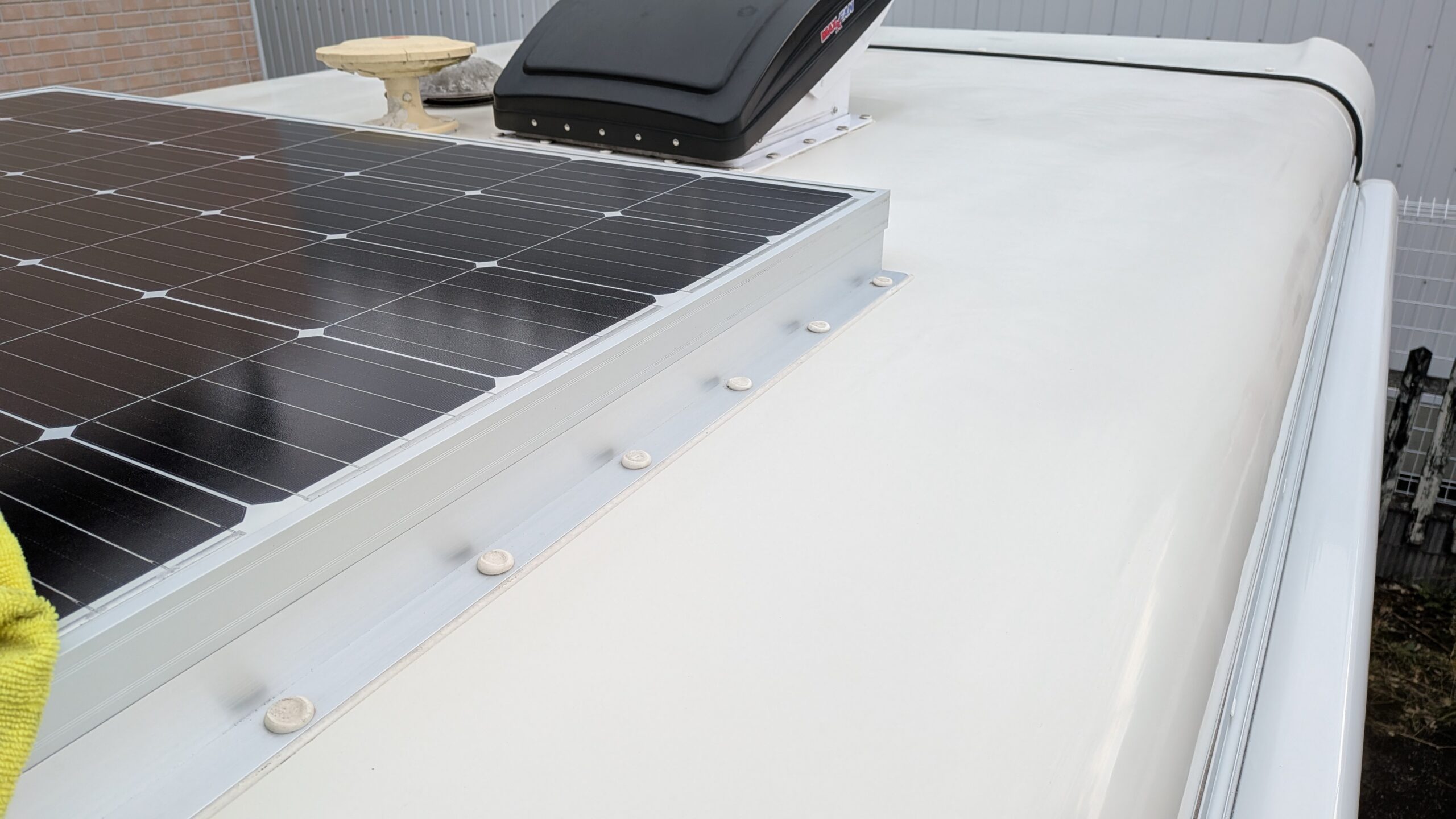 FRP、キャビン塗装面はイメージ通りキレイになってきますが、写真のモールやコーキングは落ちない黒ずみもけっこうあります