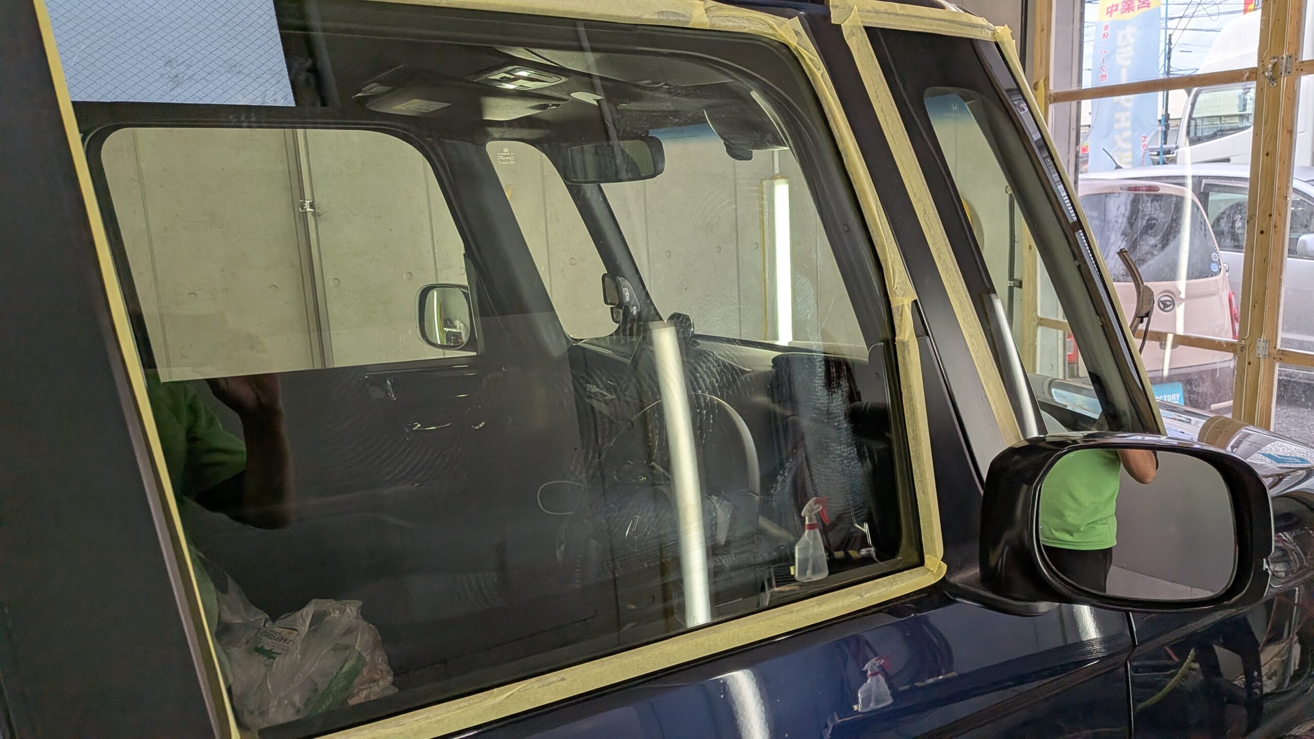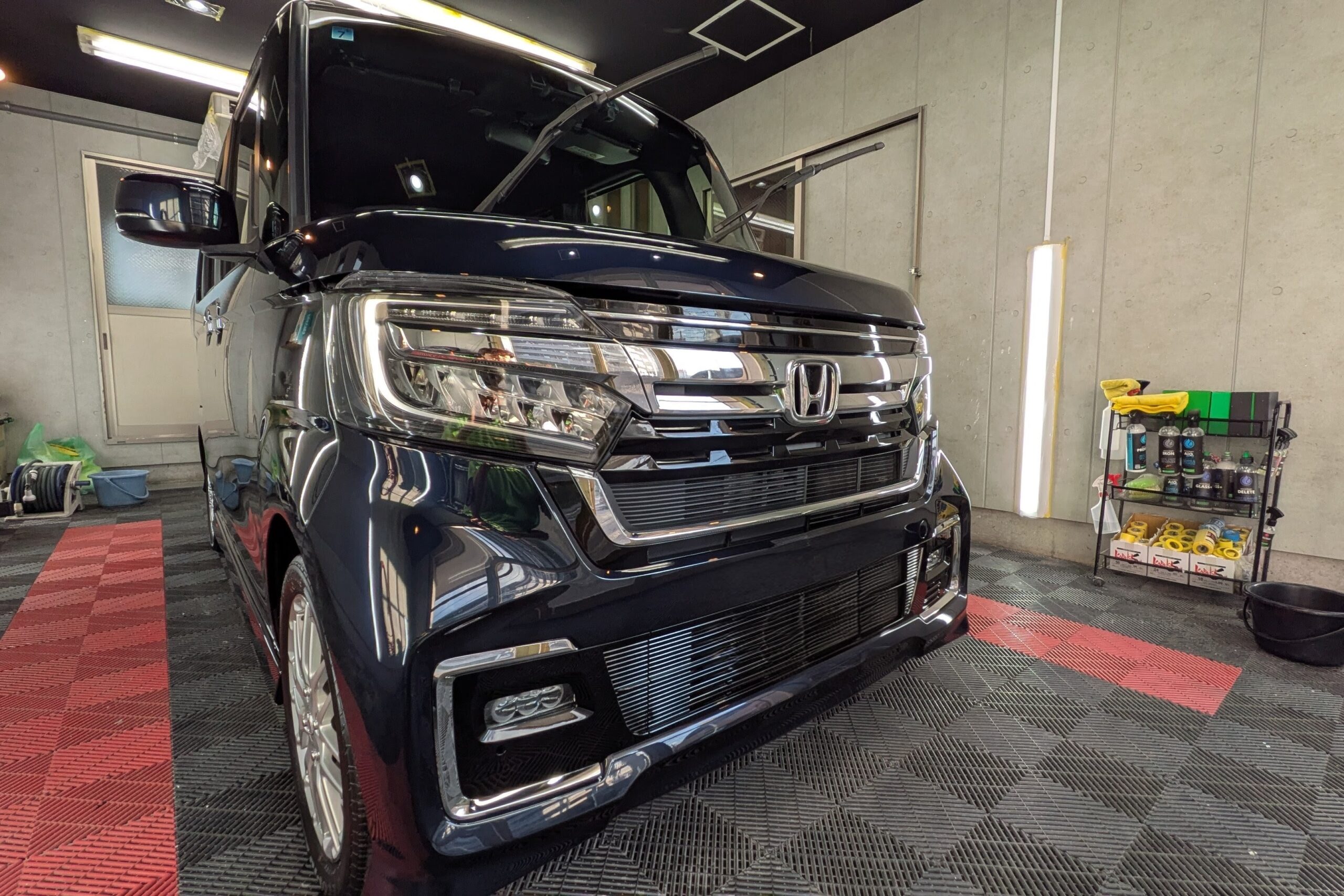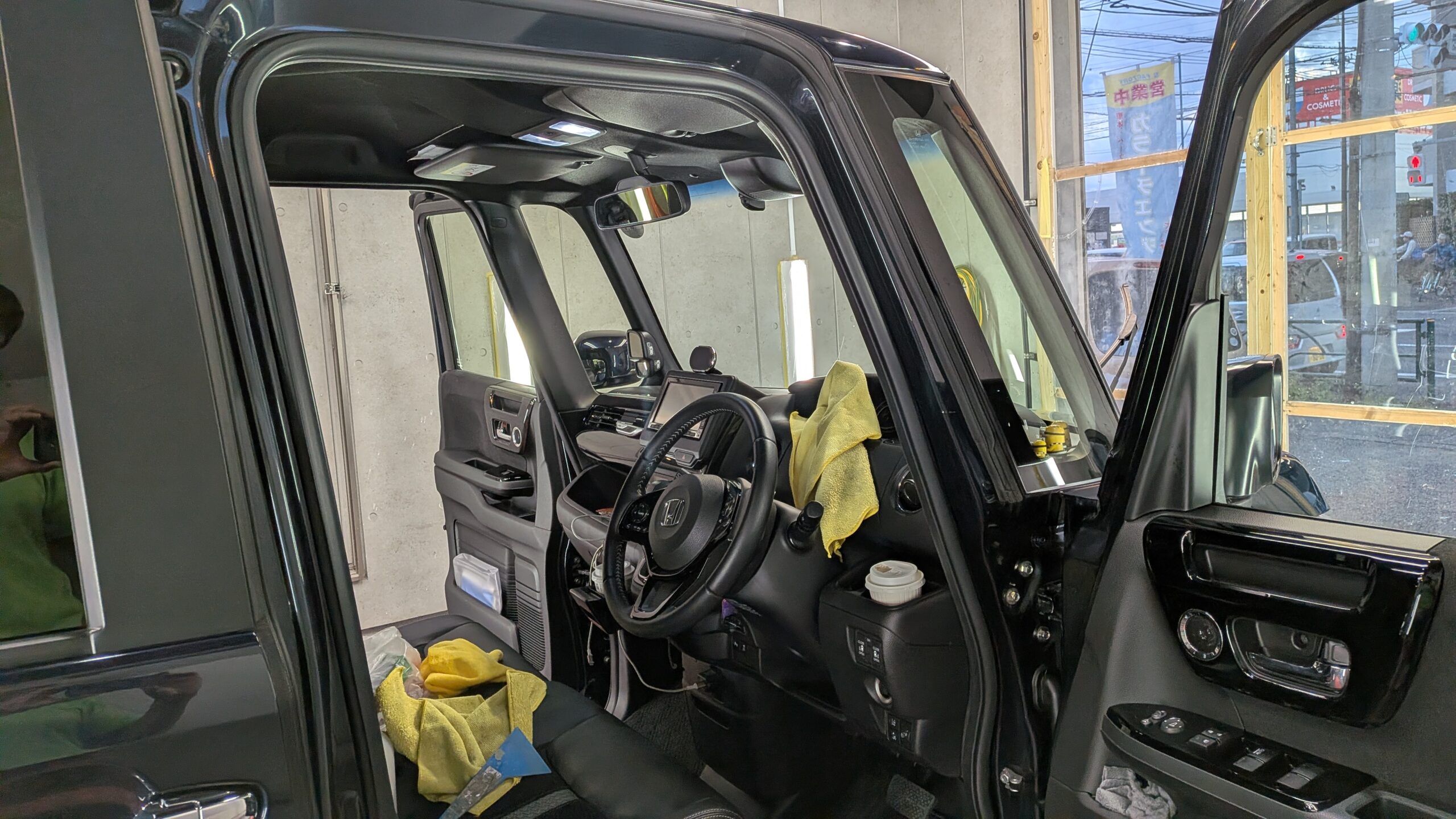 ウインド面もコーティング仕上げでご希望いただいておりますので磨き入れいたします