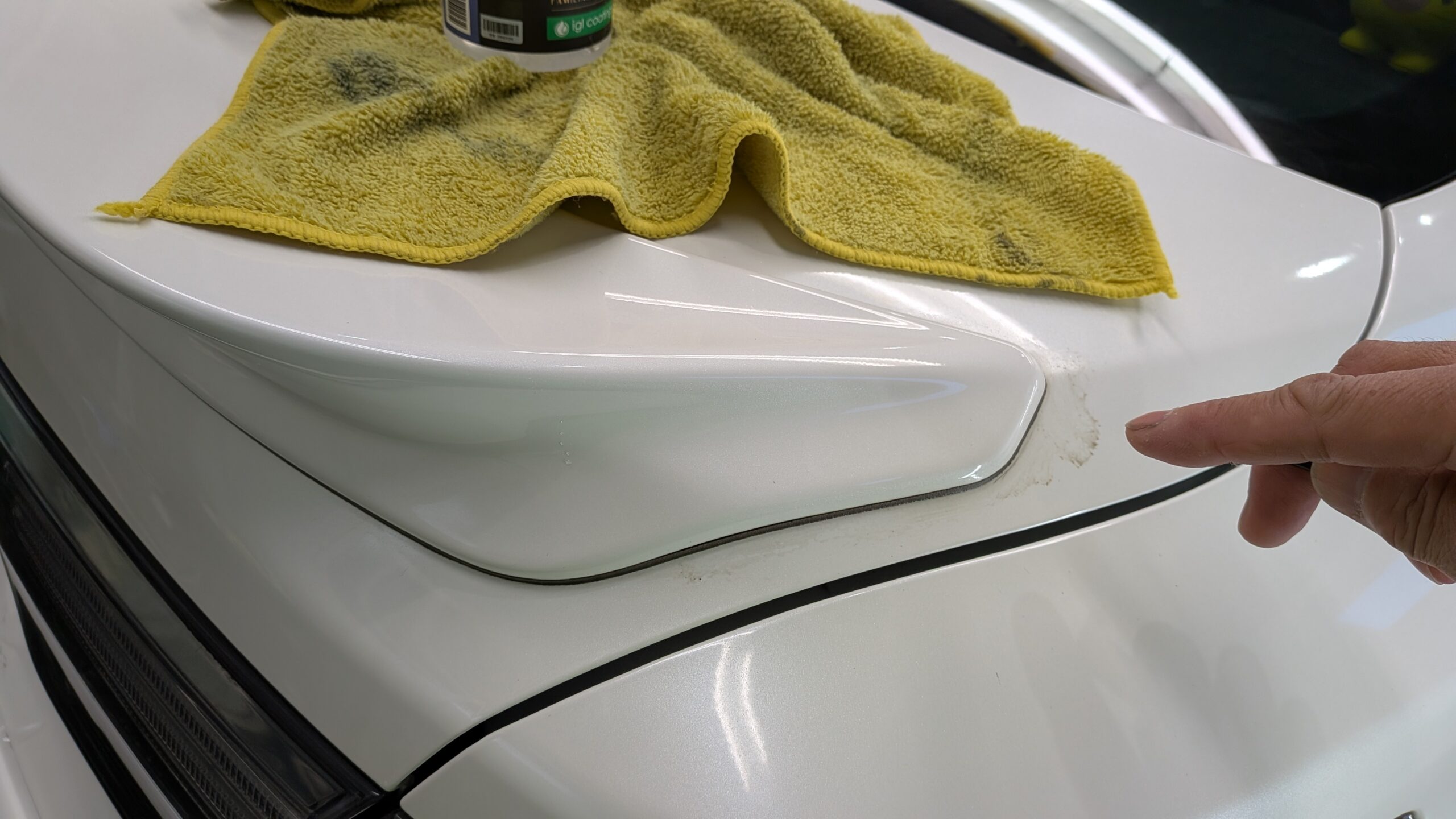 洗車後は洗車で落ちない凹凸部分の水あかやボディ表面の鉄粉などをチェックしていきます