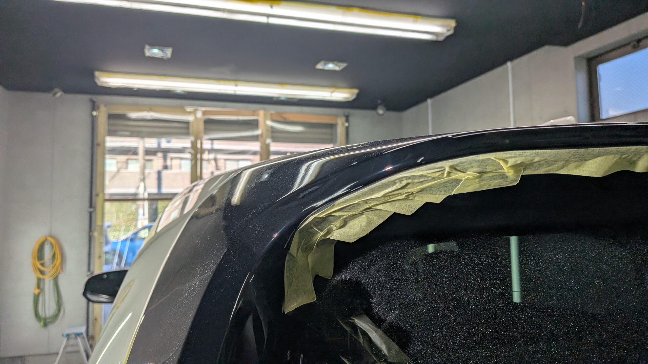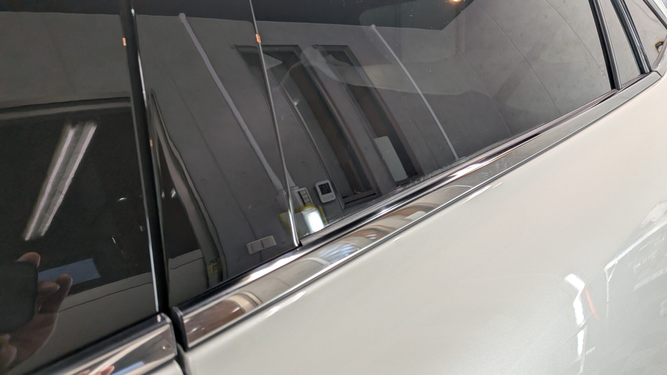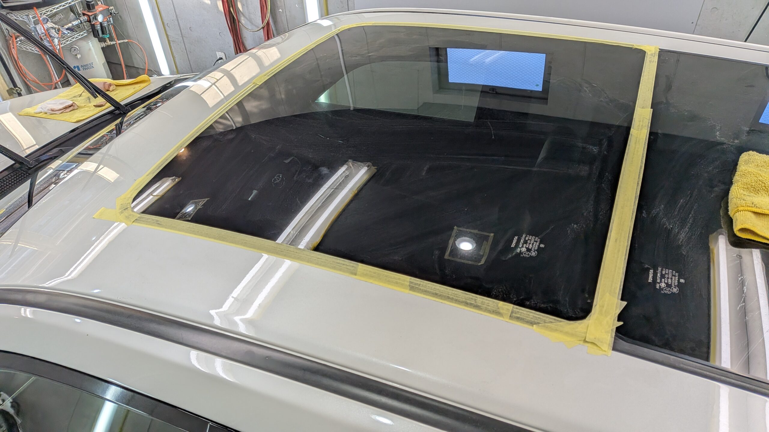まずウインド面の下処理からです。パッと見はキレイにみえますが、それなりに経年を感じる状態になっておりました。とくにサンルーフはそうでした
