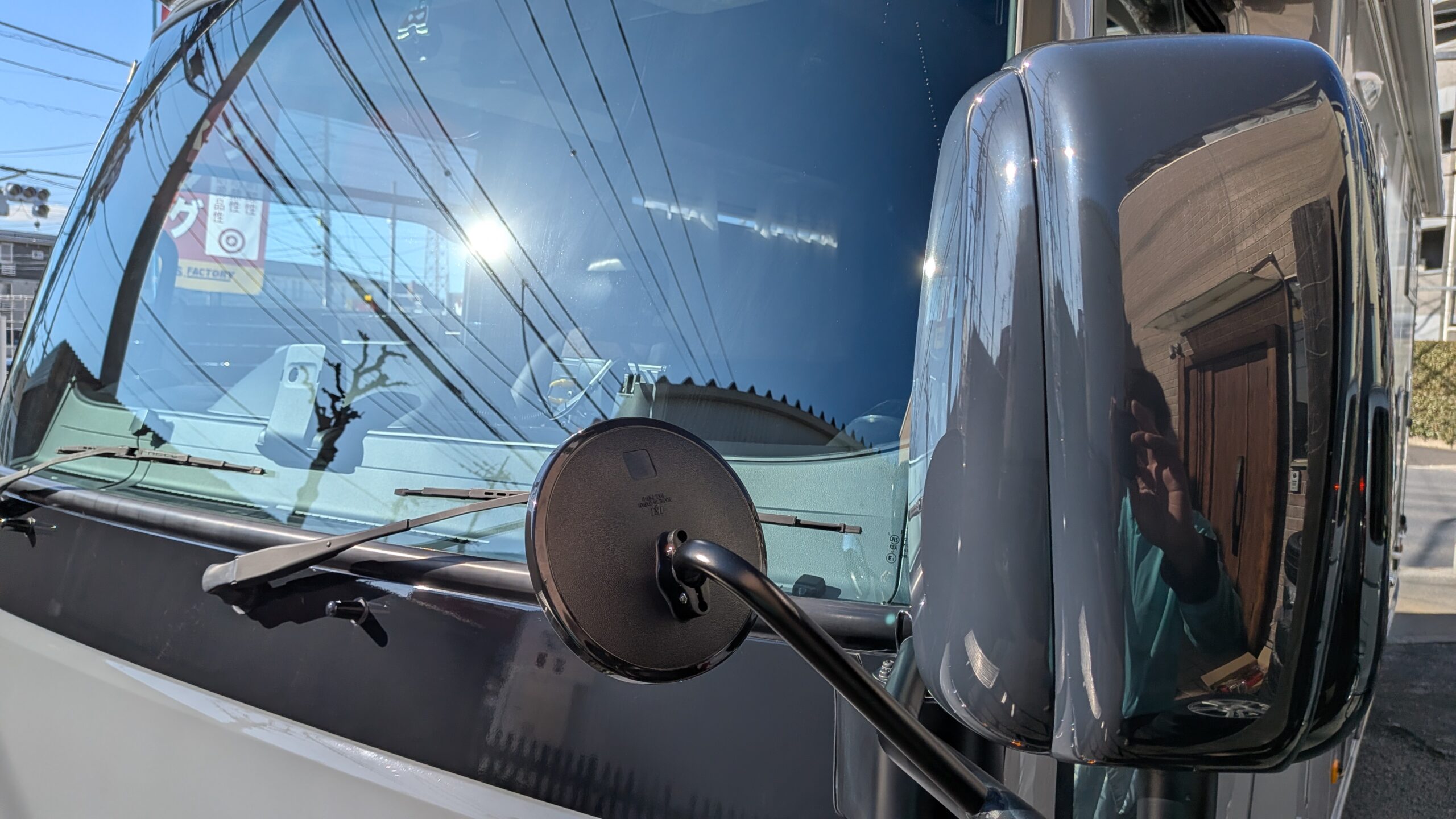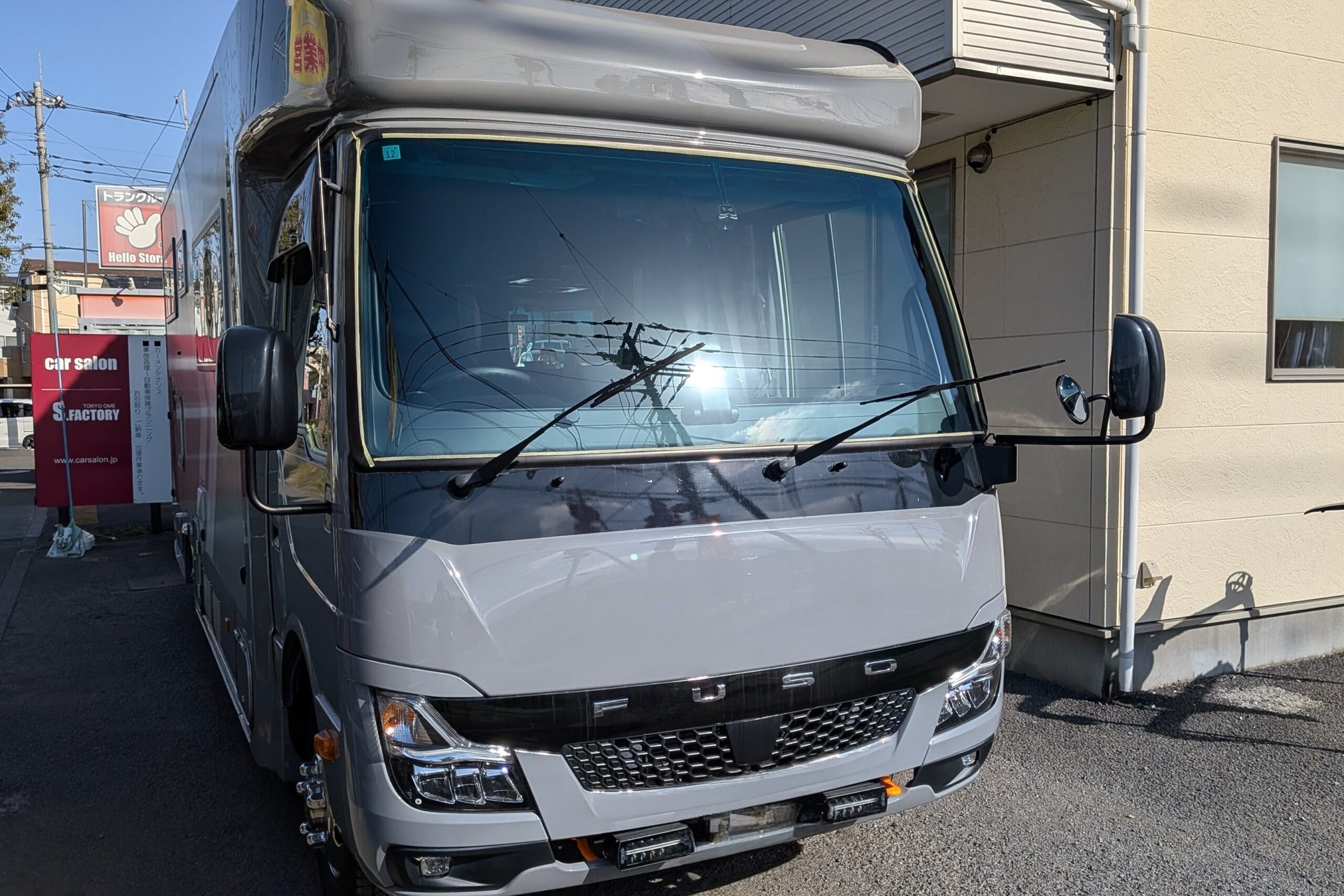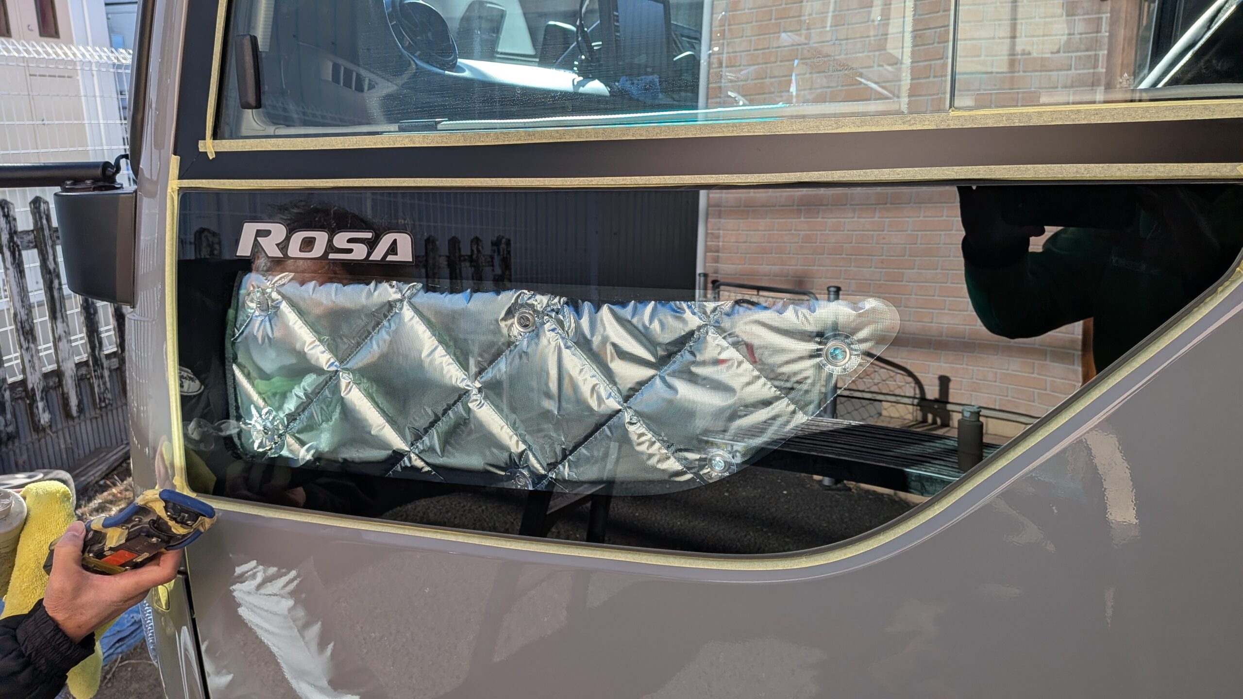 ボディがでかすぎて、まずはウインドガラスから作業させていただきました