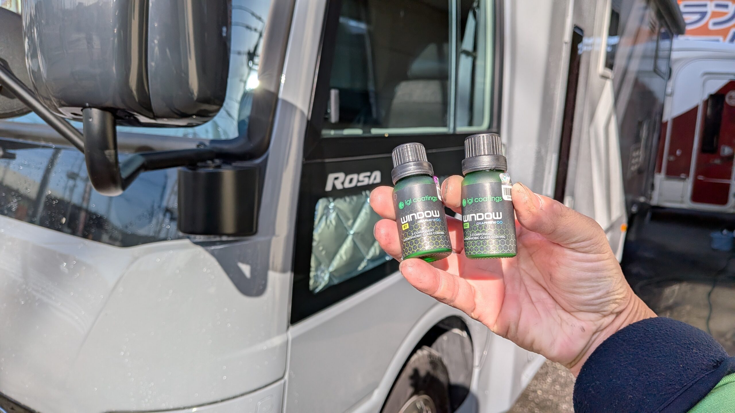 日をまたいでおりますが、ウインド面のセラミックコーティングの施工も行いました。