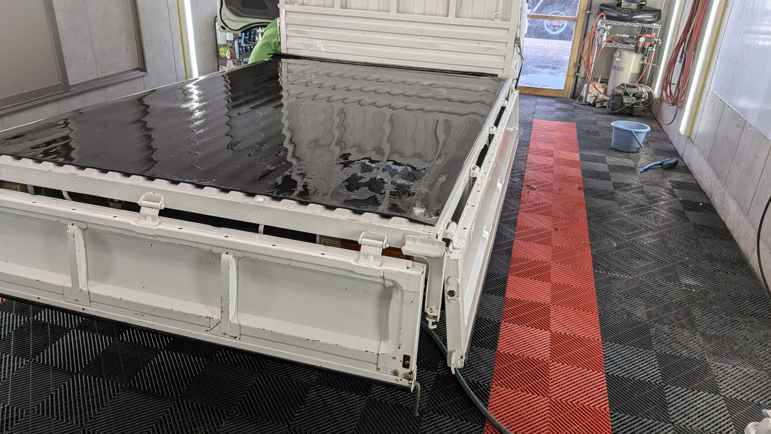 荷台のゴムマットは下ろしませんが、まくってきわの汚れや枯れ葉などは処理いたしました