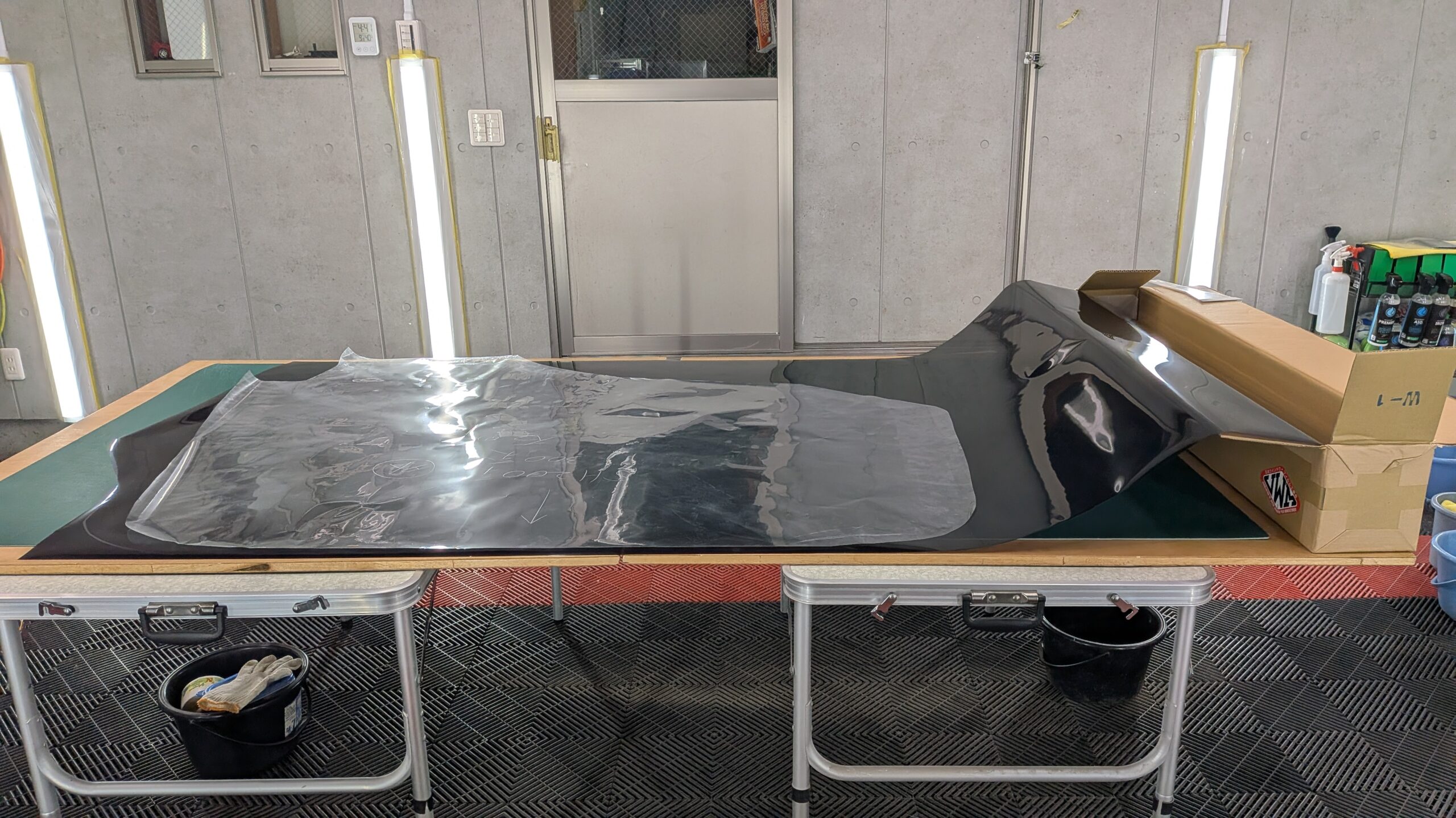 今回は前後、スライドするドアです。プラスの施工時間かかるかもしれません。
