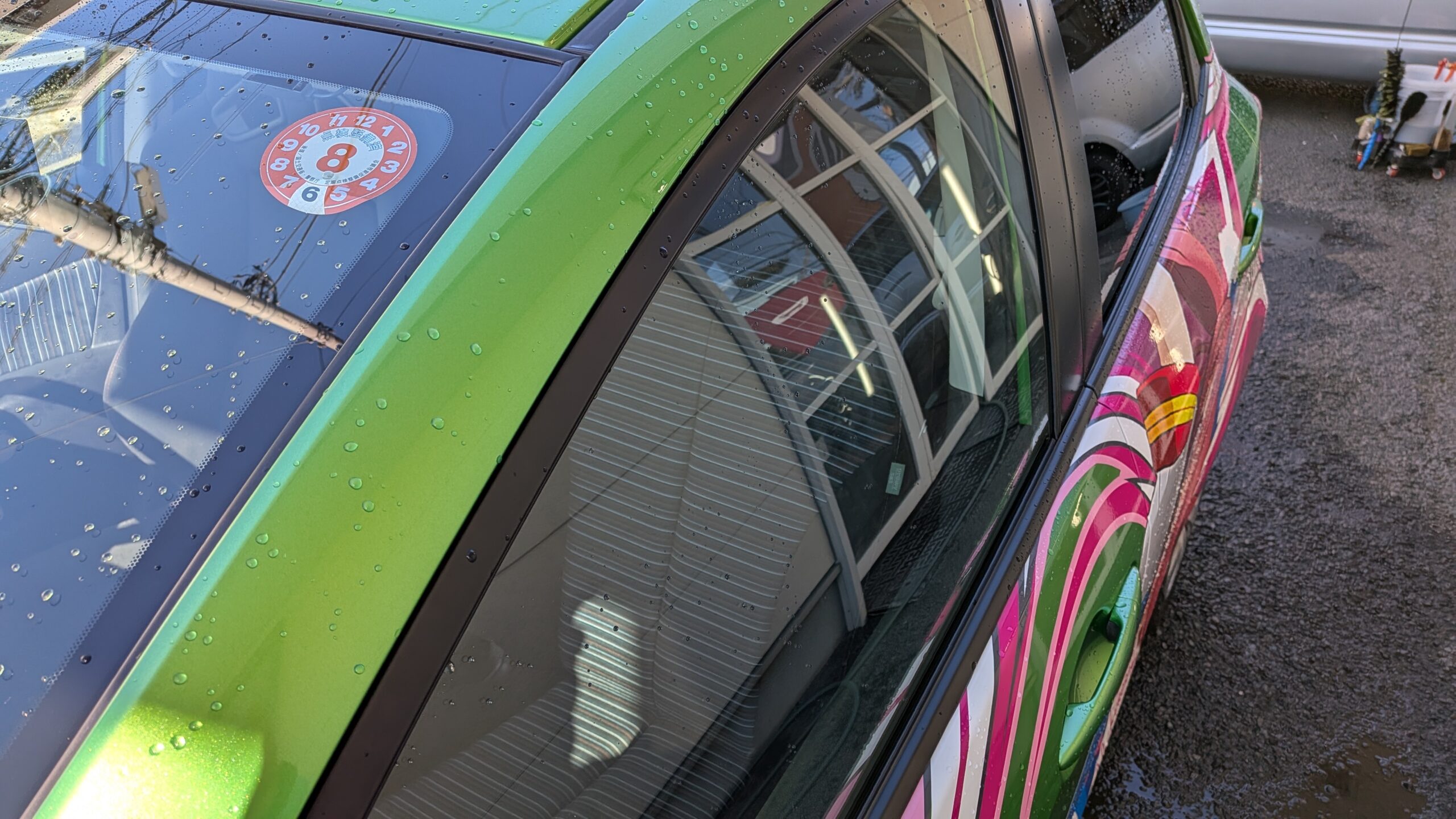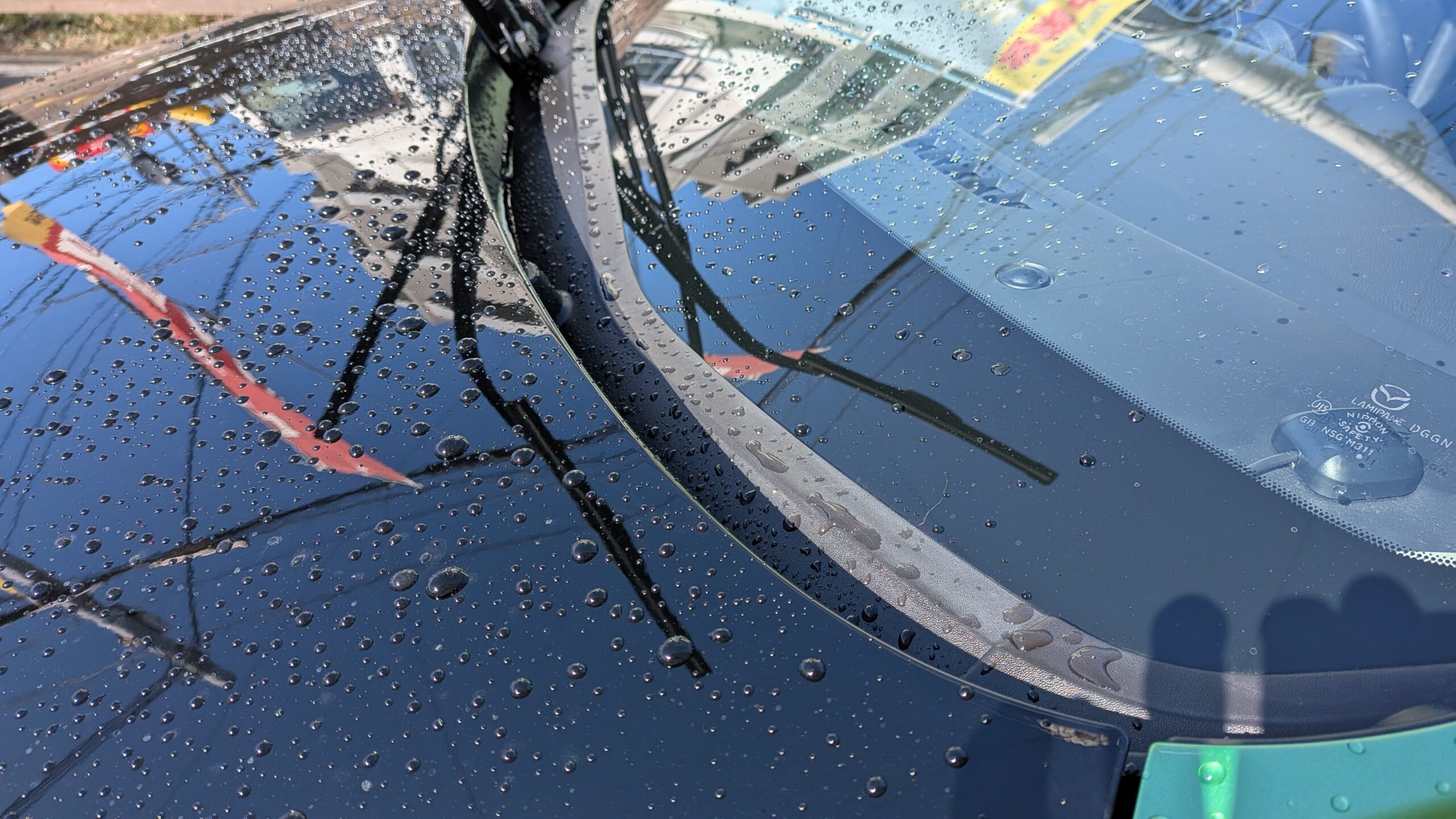 ウインドもセラミックコーティング「ウインド」も良い感じですが、ワイパーの部分は施工時の水玉を再現したい場合は再施工が必要ですね。コーティング被膜が取れてるわけではないです