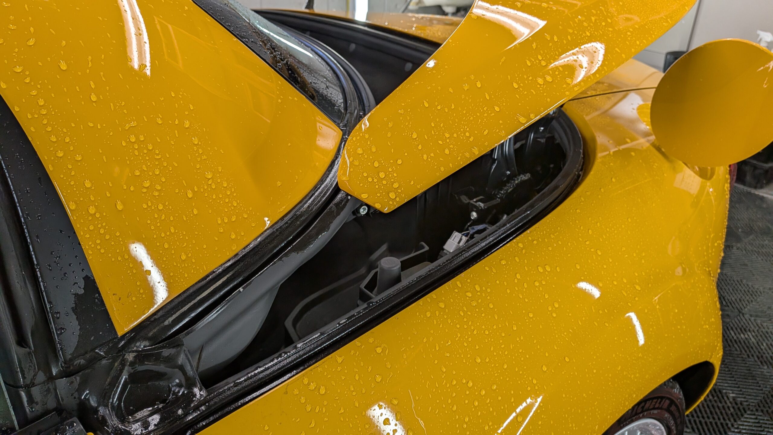 樹脂材やプラスチック面なども気持ち良く撥水するようにしてございますが、オプションのセラミックコーティング「トリム」とは差をつけていますこと、ご容赦くださいませ