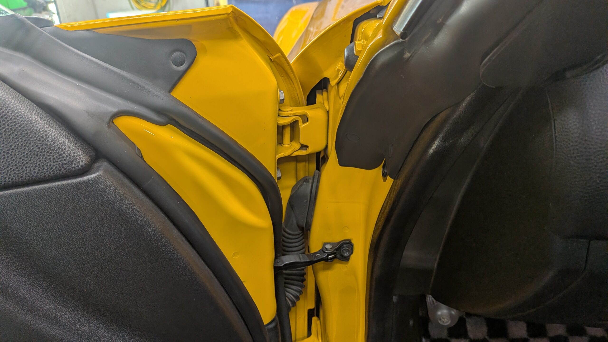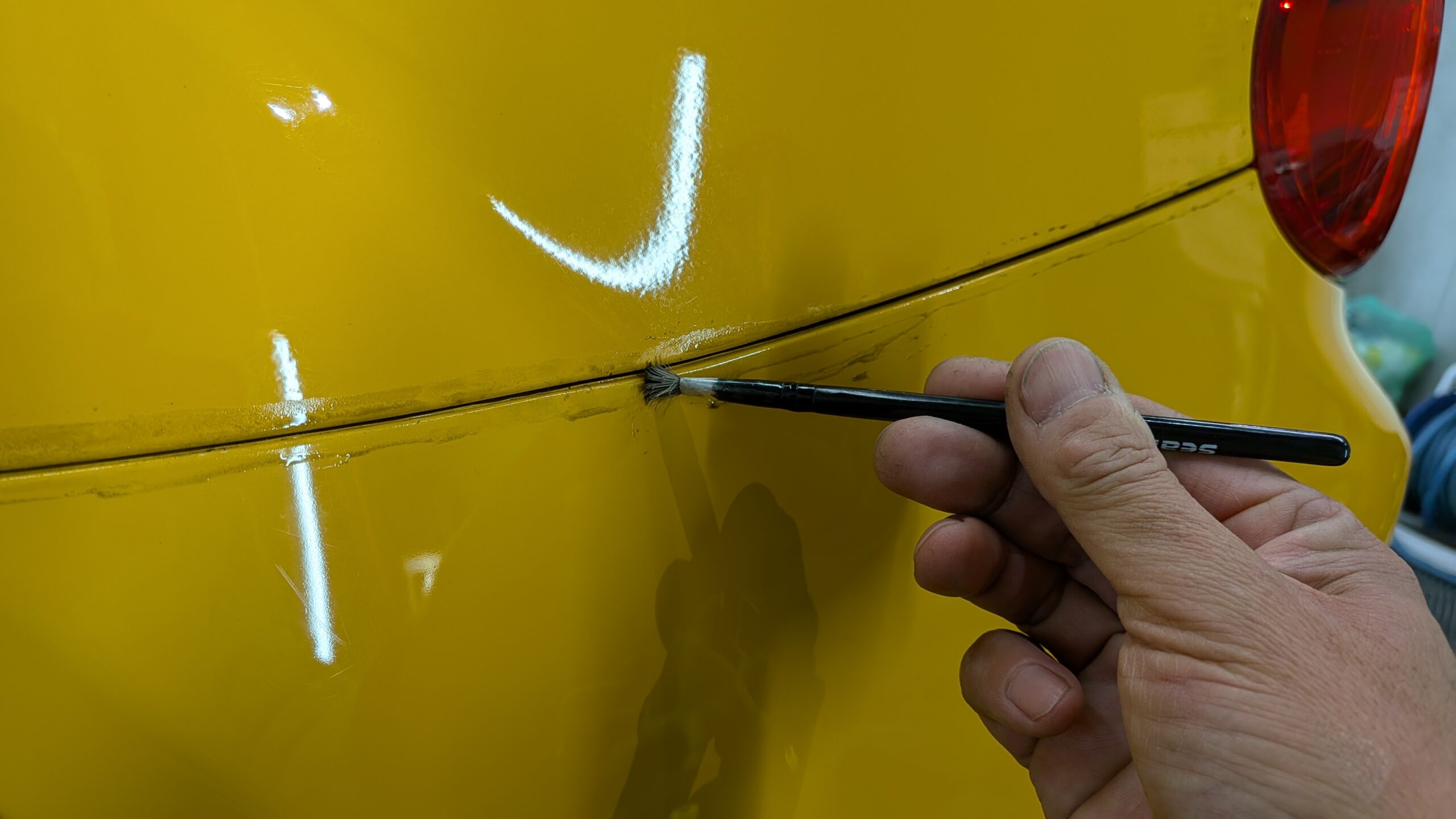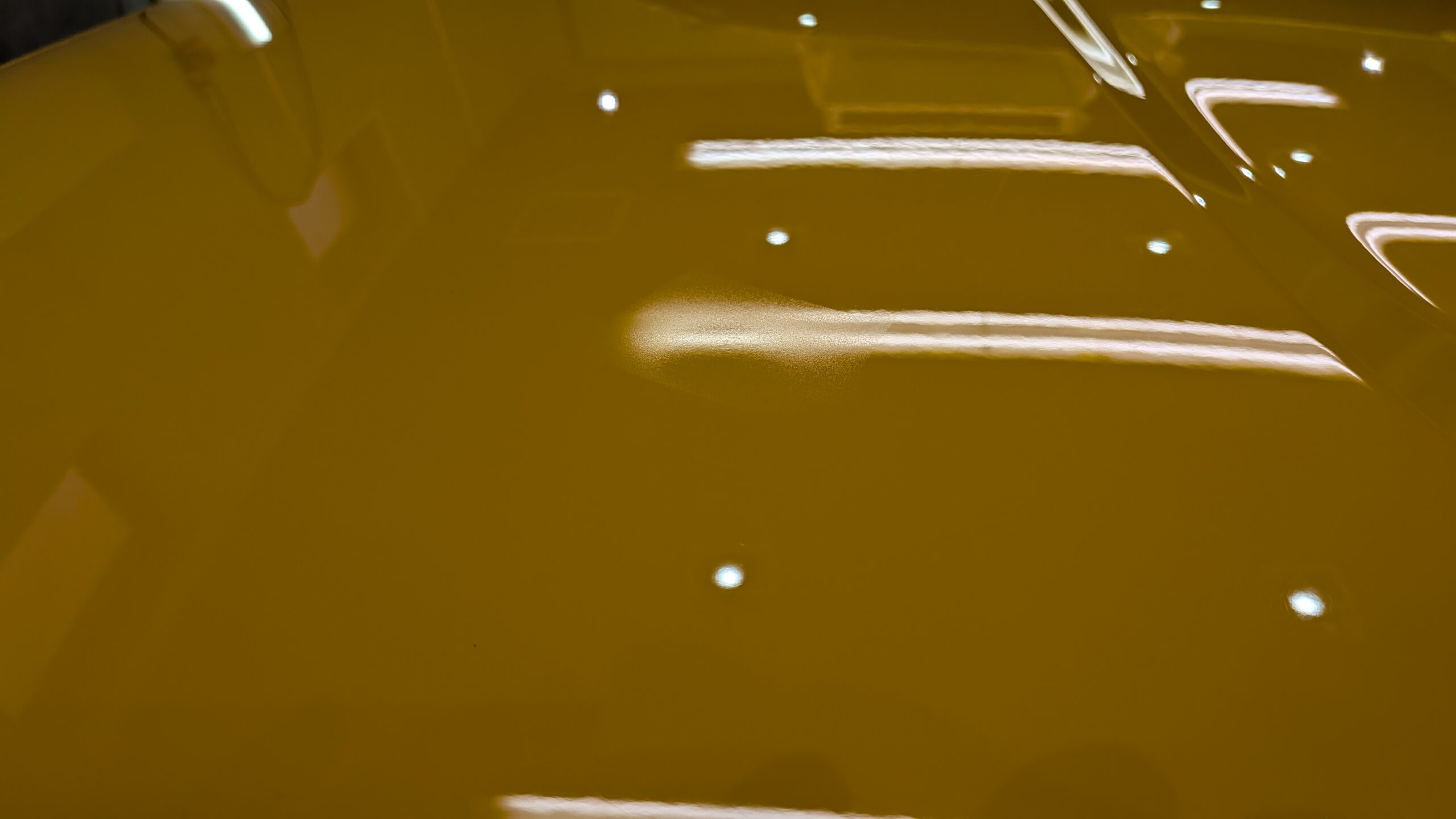 ボンネット中央付近に四角いリペアした後がありますね。これも磨くときは要注意です