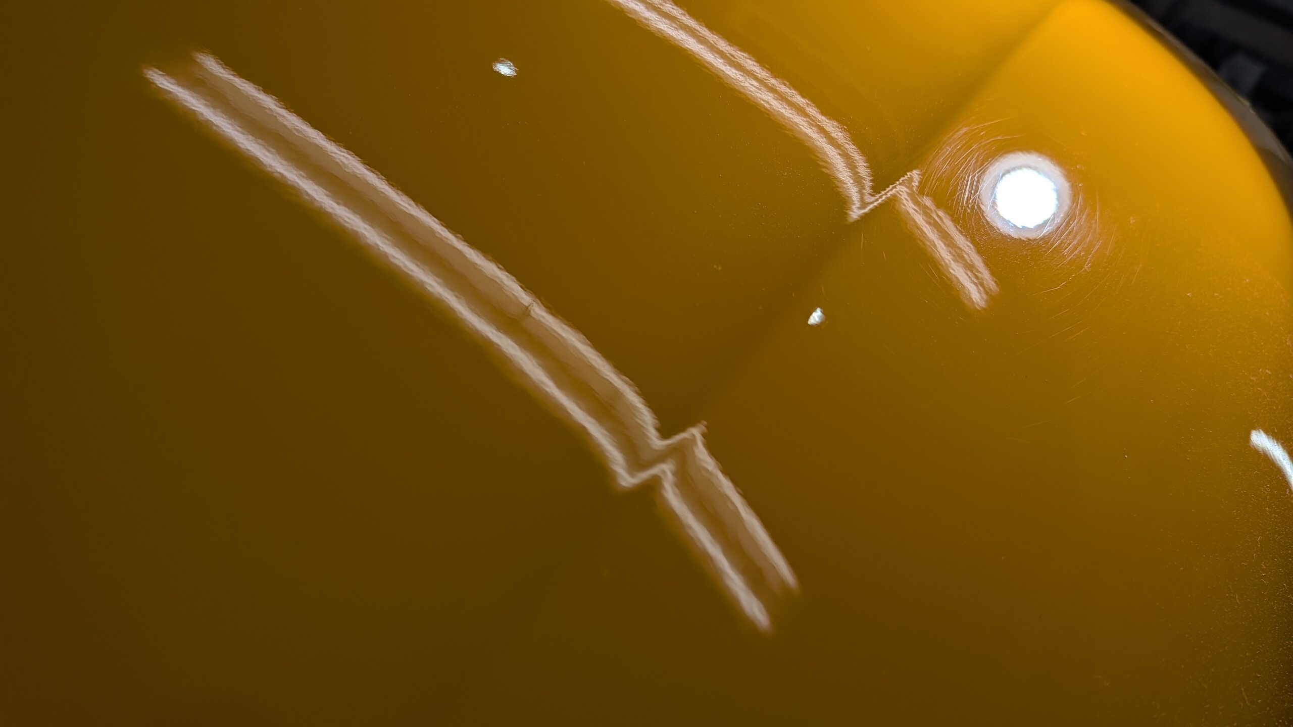 50センチ離れてみれば新車とそん色ありませんが、検査の視点では深いキズ、内部のくすみなども無くはないです