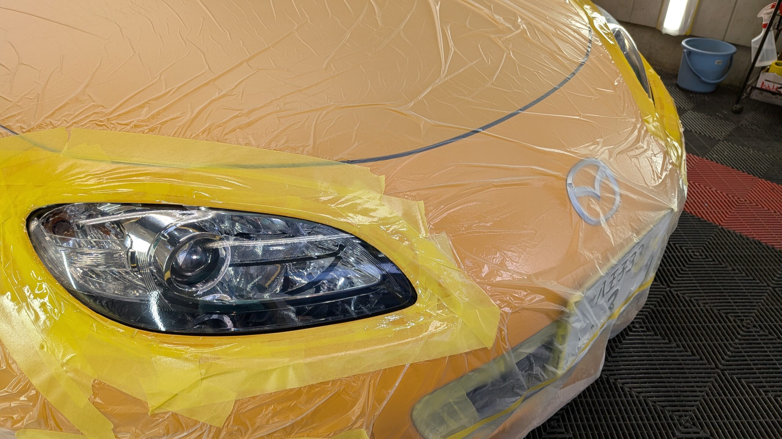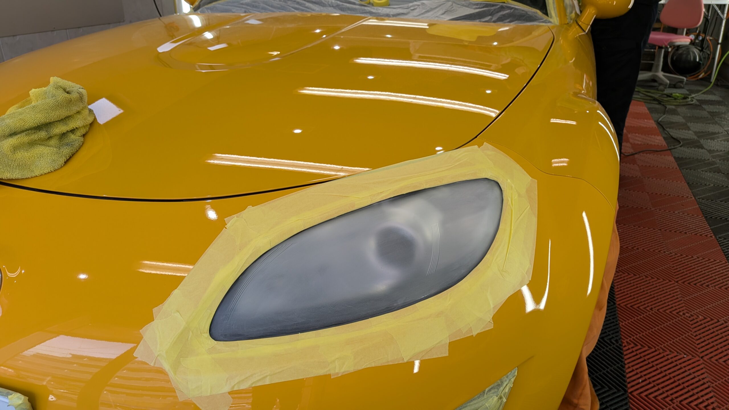ヘッドライトは案の定、オリジナルのハードコート層は既になく、ポリカ自体をその場しのぎ的な磨きがされているパターンでした。