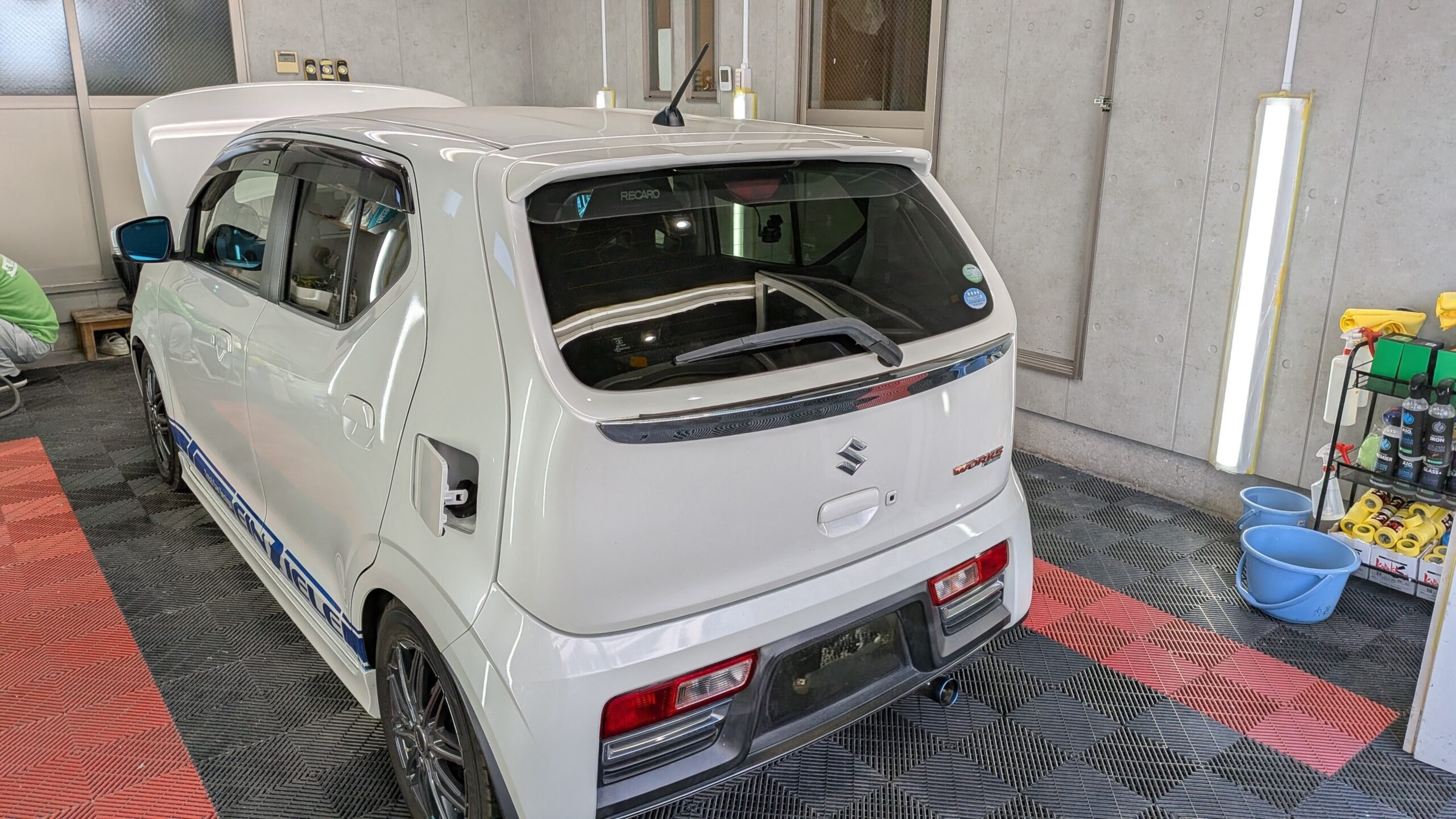 バンテック ジル ルーフまわりはカラー塗装とクリアーとガラスコーティング仕上げ ルーフ1ヶ所FRP割れ補修 その他面はガ…